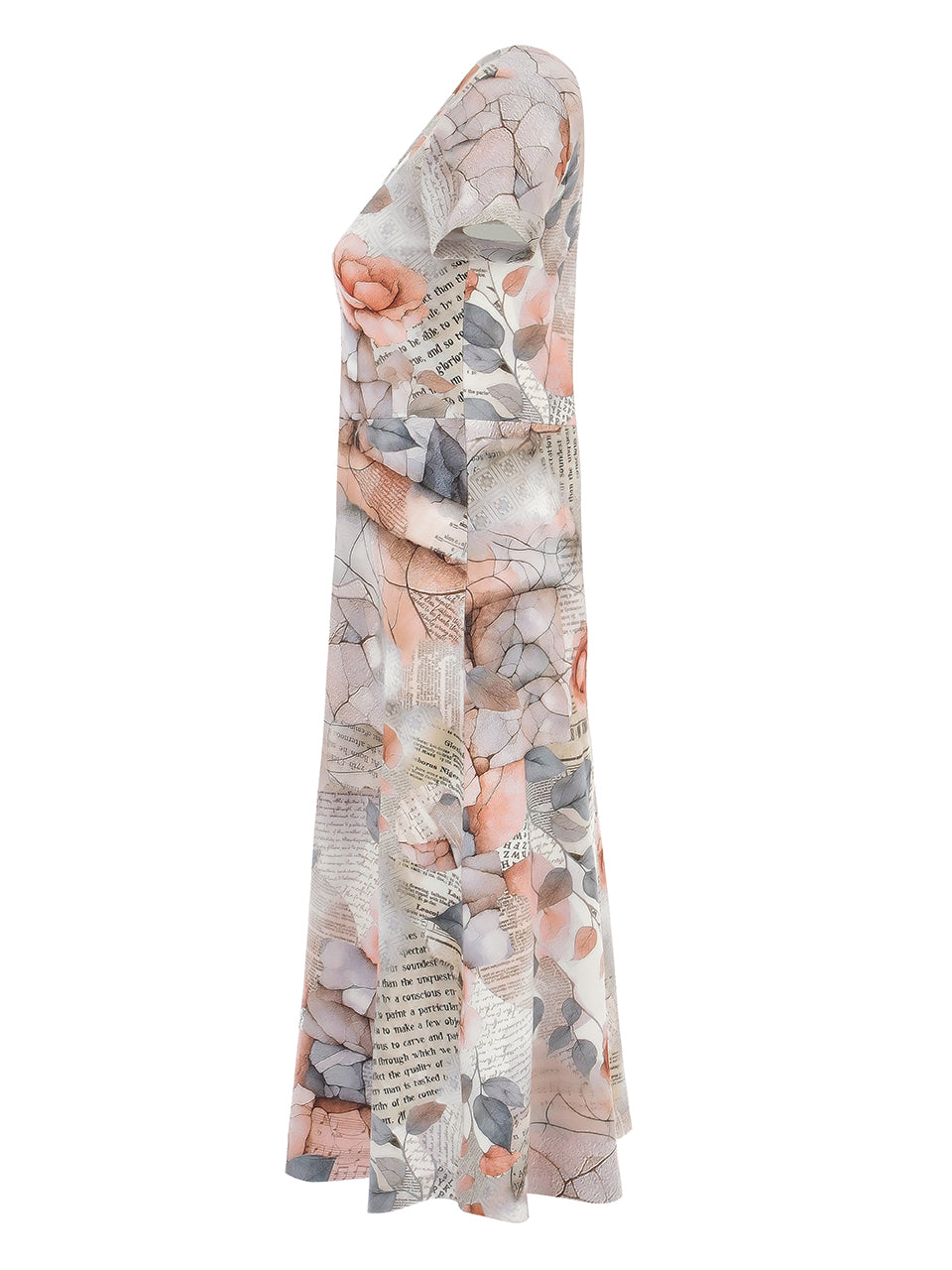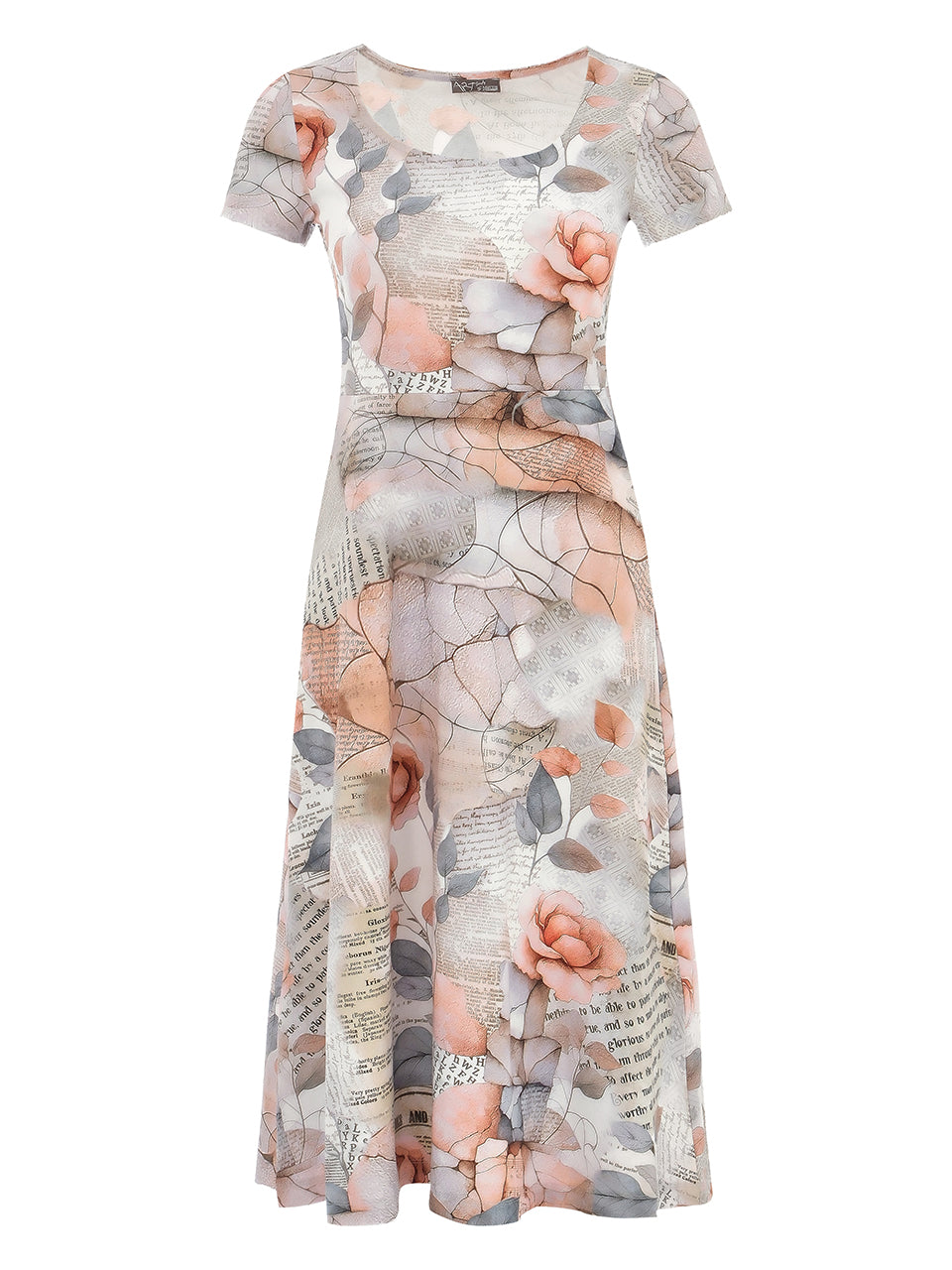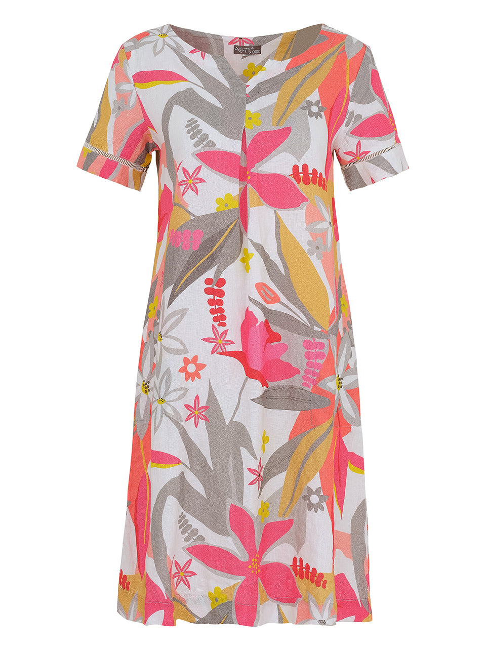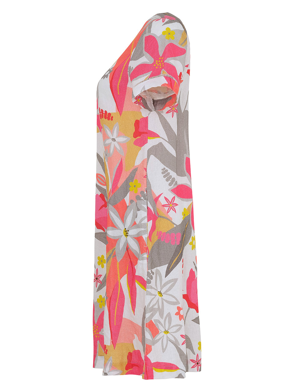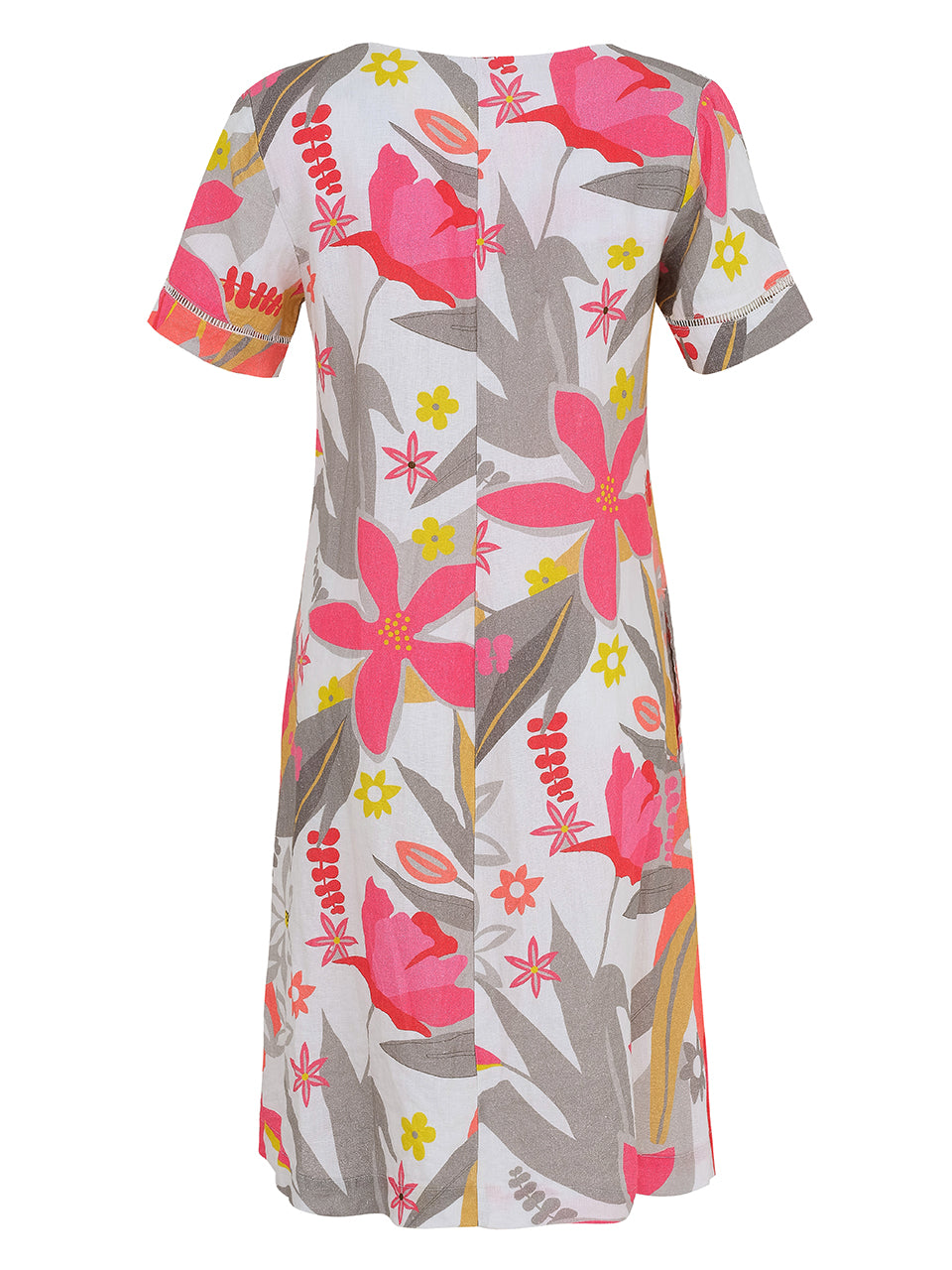 "A Smell of Gardenia" Print Short Sleeve Linen Dress