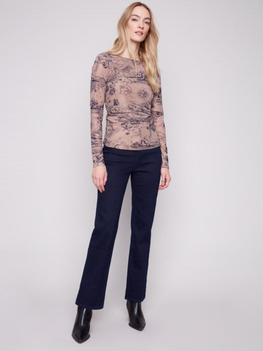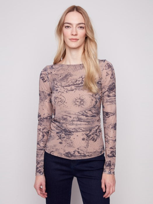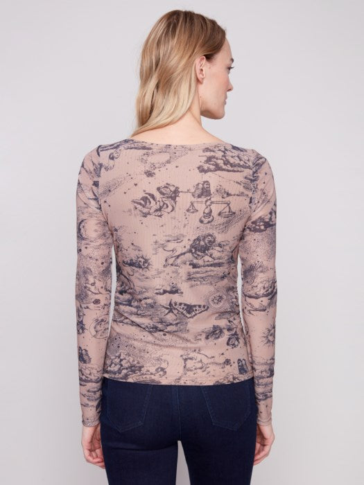 Autumn Watercolour Print Long Sleeve Split Neck Shirt