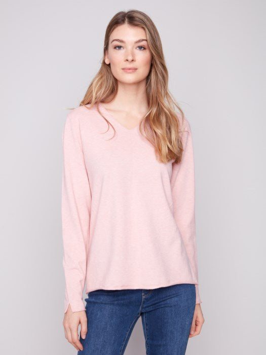 Ballet Pink Long Sleeve Vneck Soft Knit Sweater