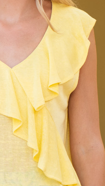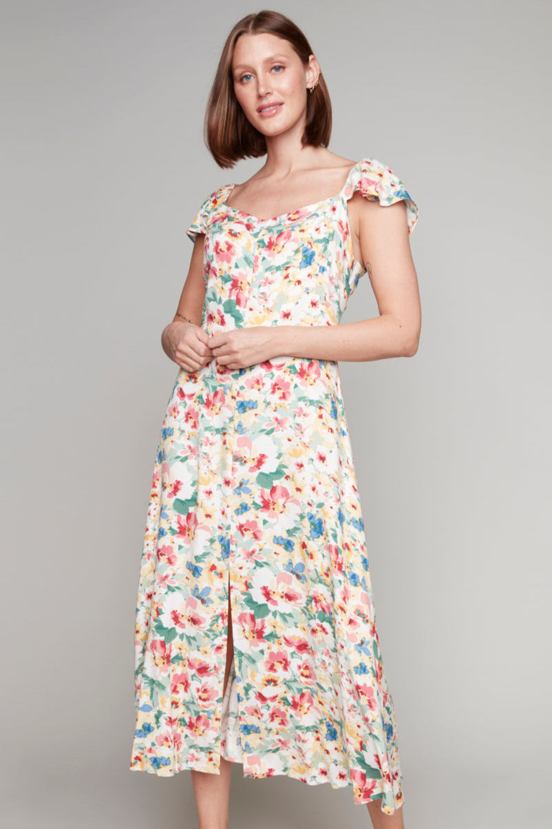Yellow Spring Floral Midi Dress w/ Flutter Cap Sleeve