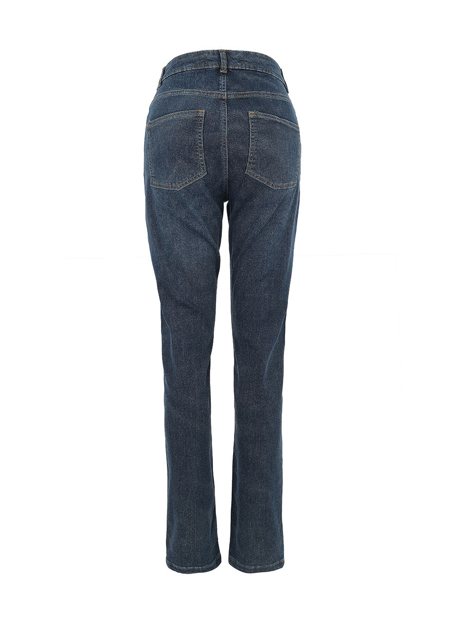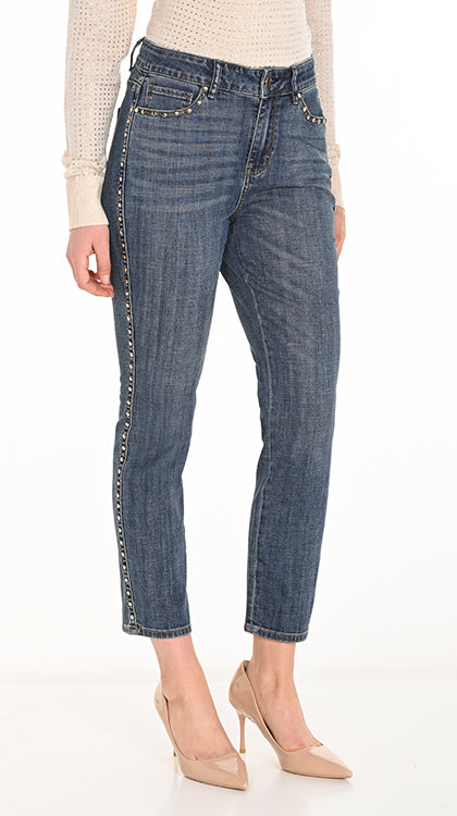 Medium Dark Wash Pull On Straight Ankle Jeans w/ Bronze Dots