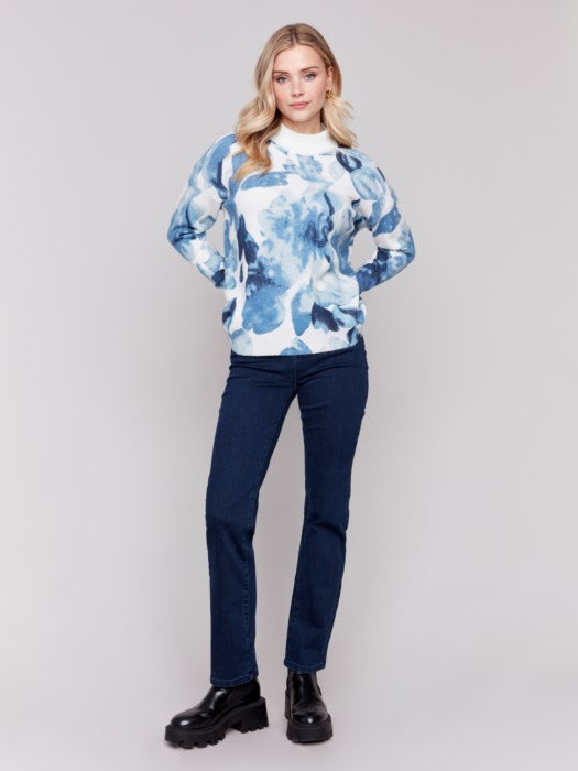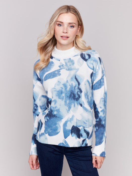 Navy Storm Print Mock Neck Drop Shoulder Sweater
