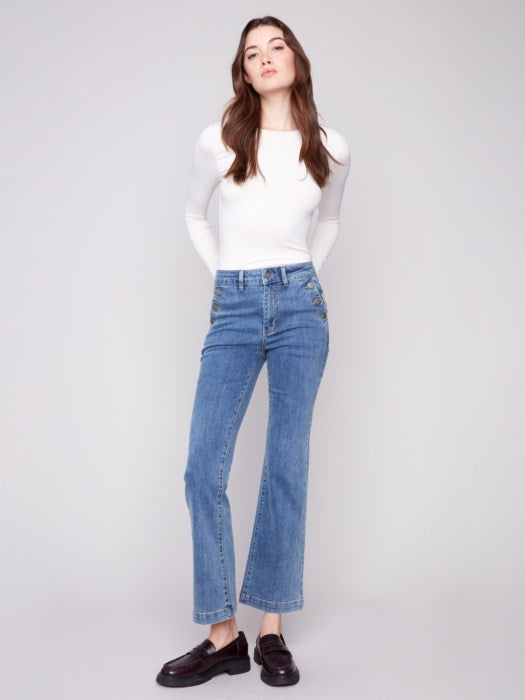 Medium Blue Jeans w/ Burnished Gold Seam Detail