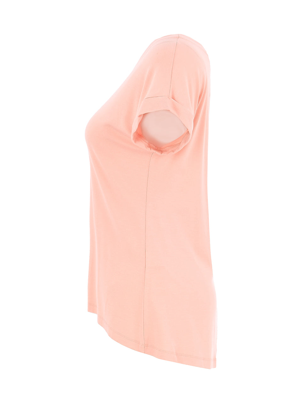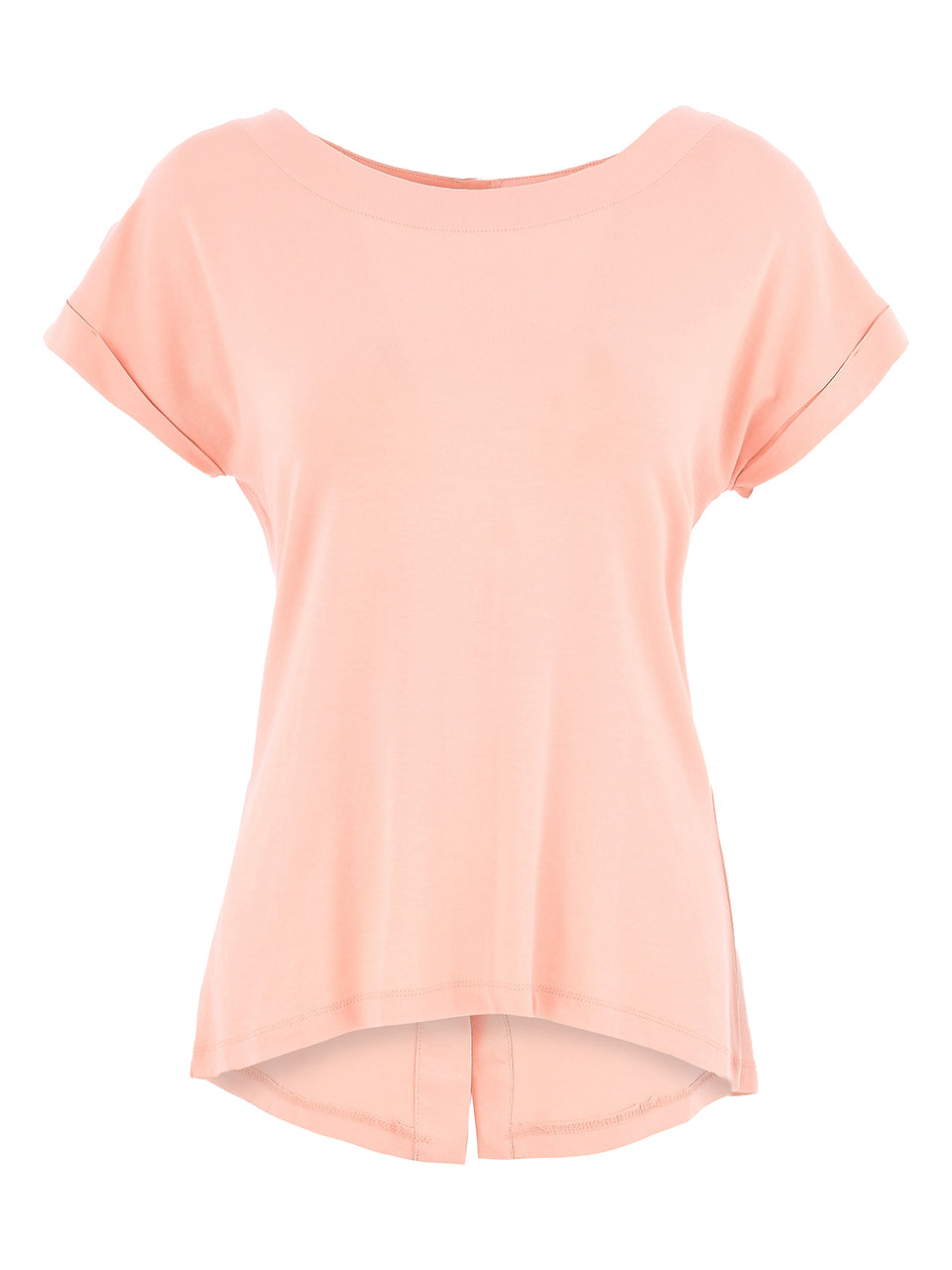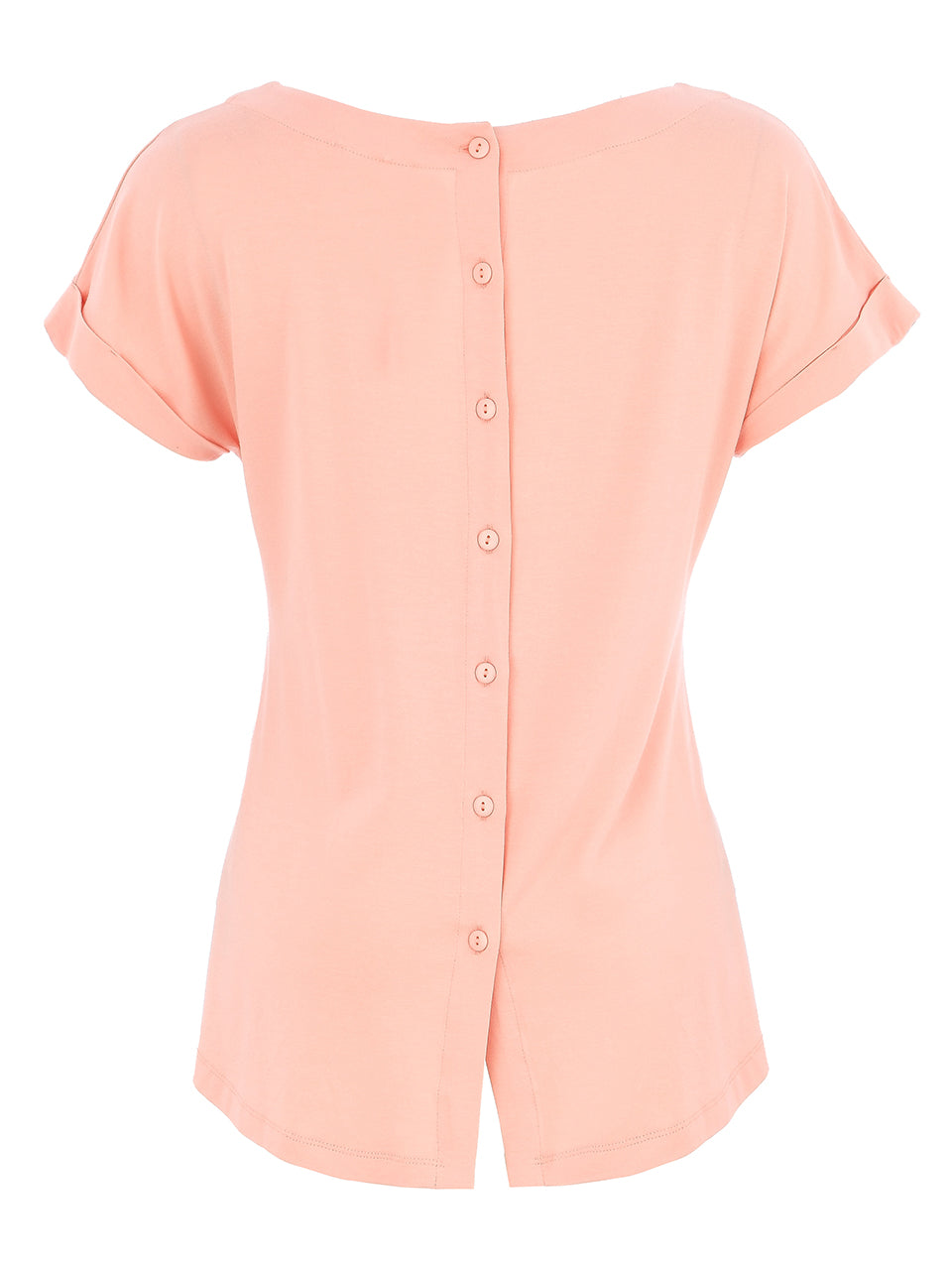 Peach Rolled Cap Sleeve Top w/ Buttoned Back