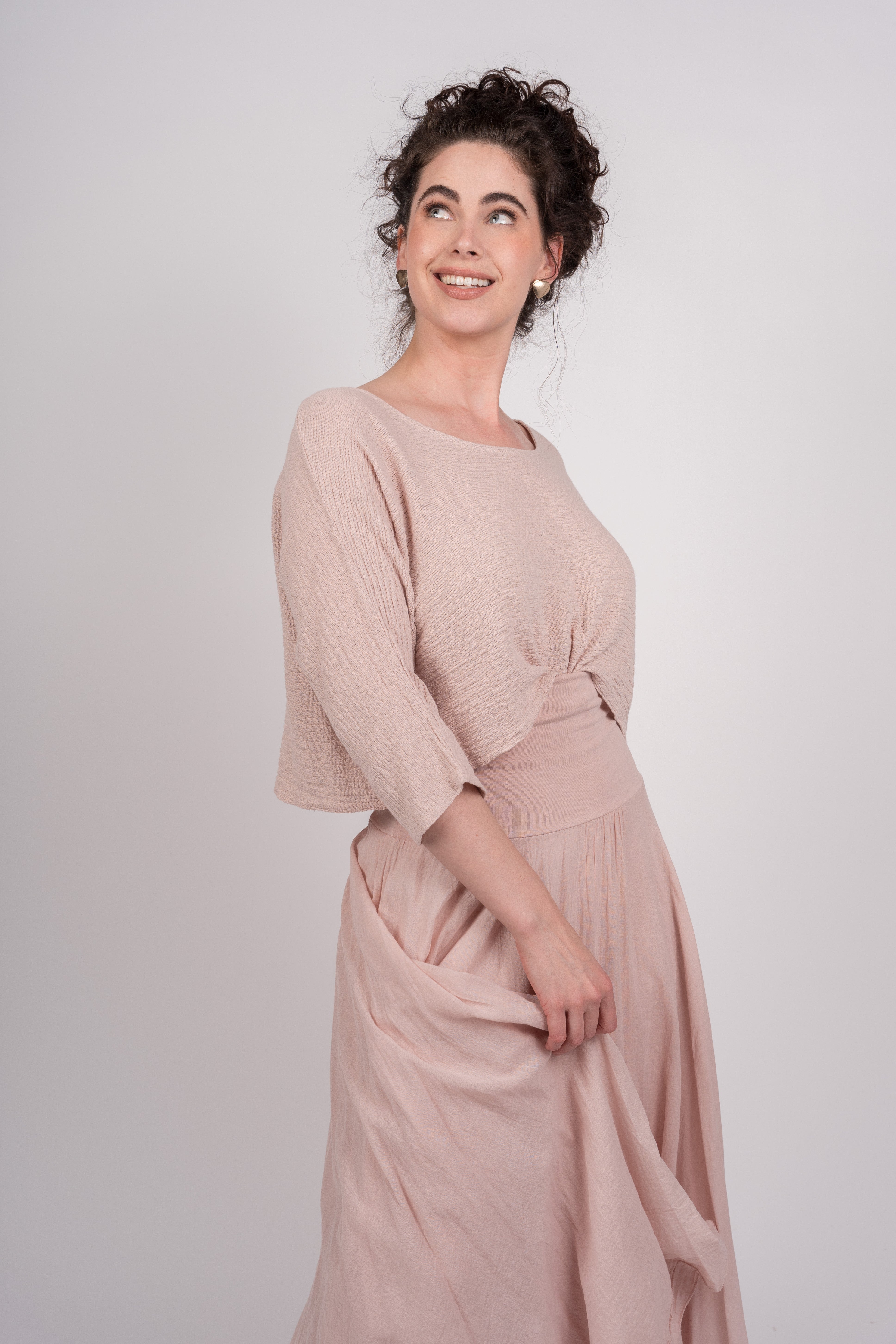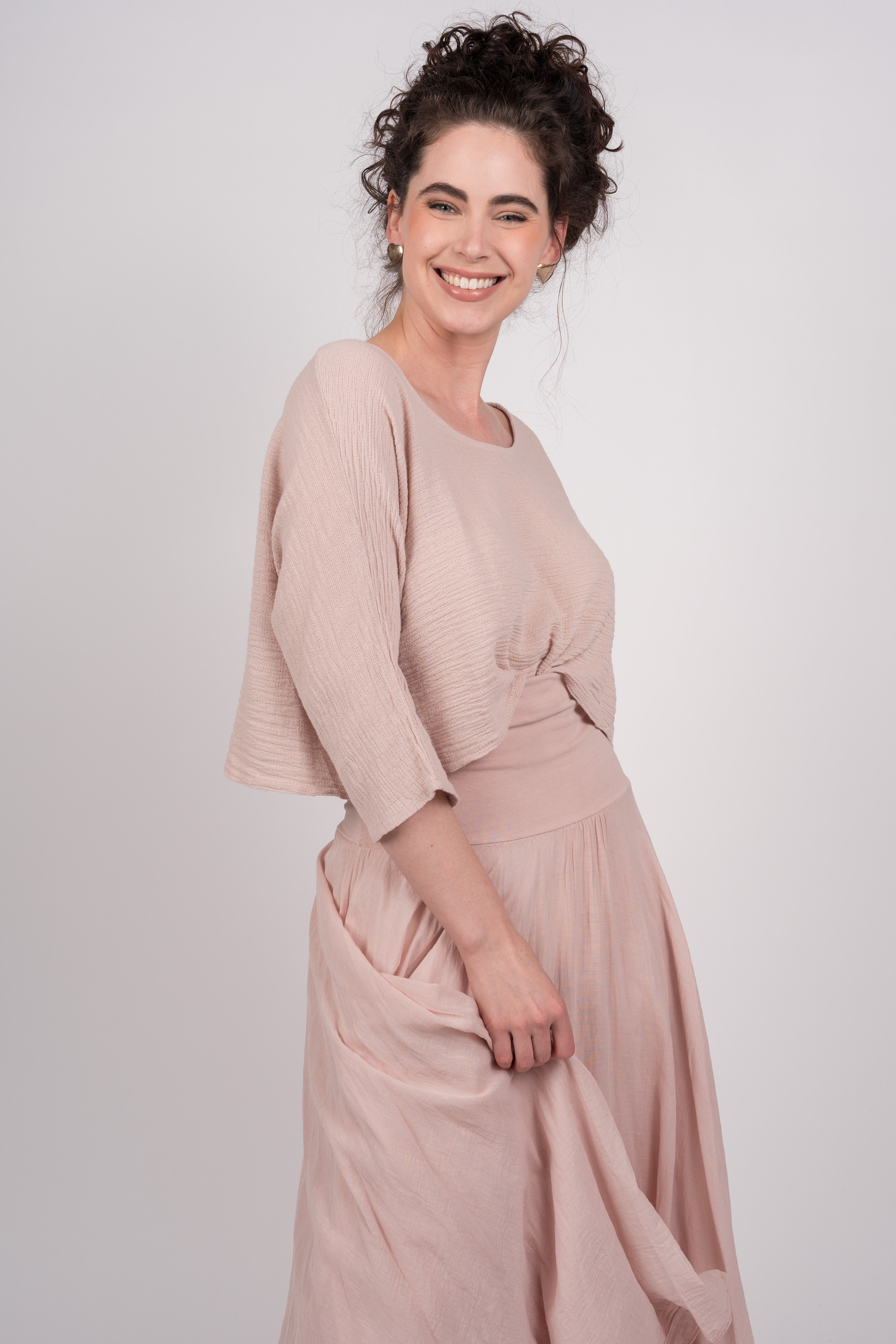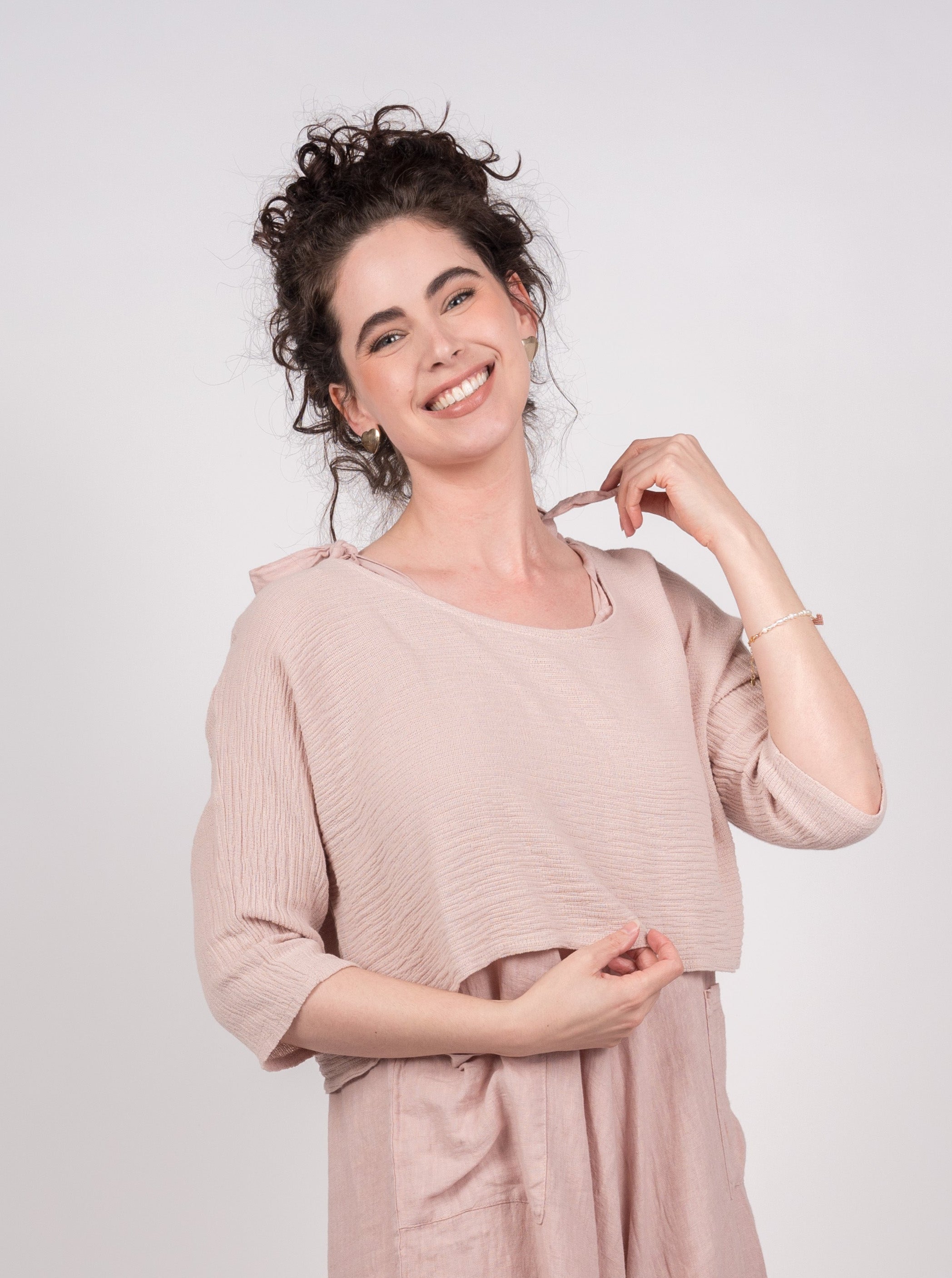 Peach Rolled Cap Sleeve Top w/ Buttoned Back