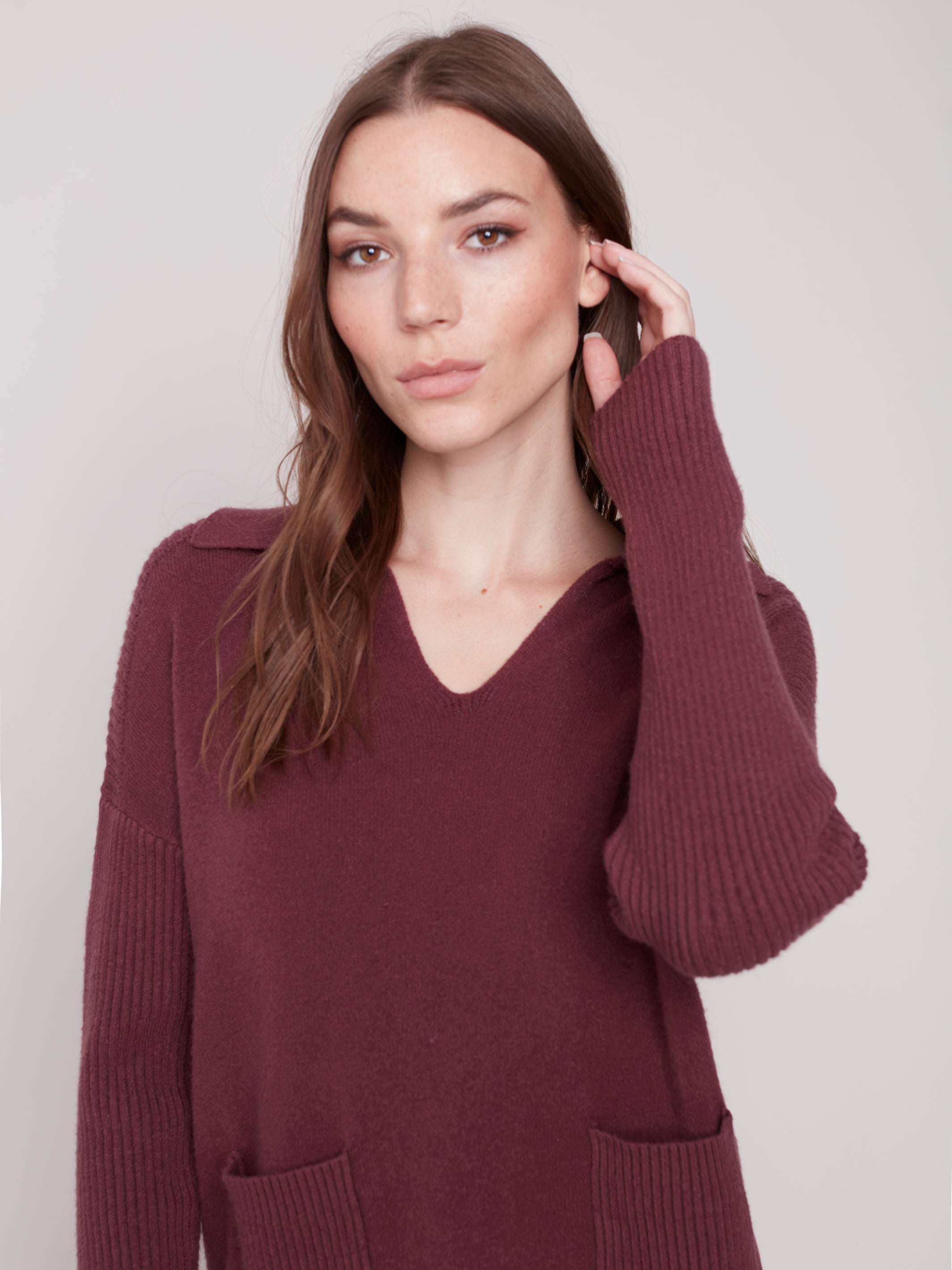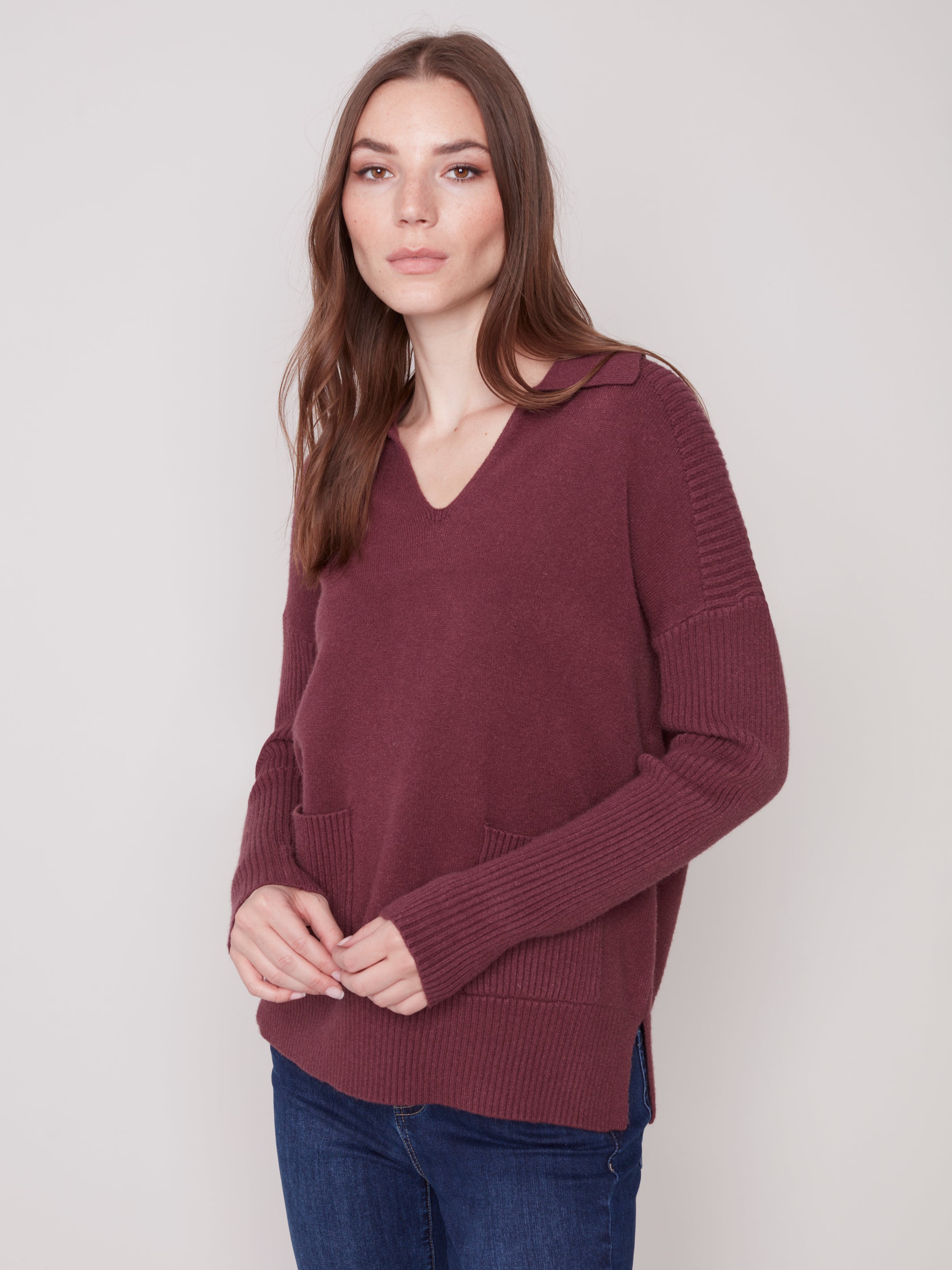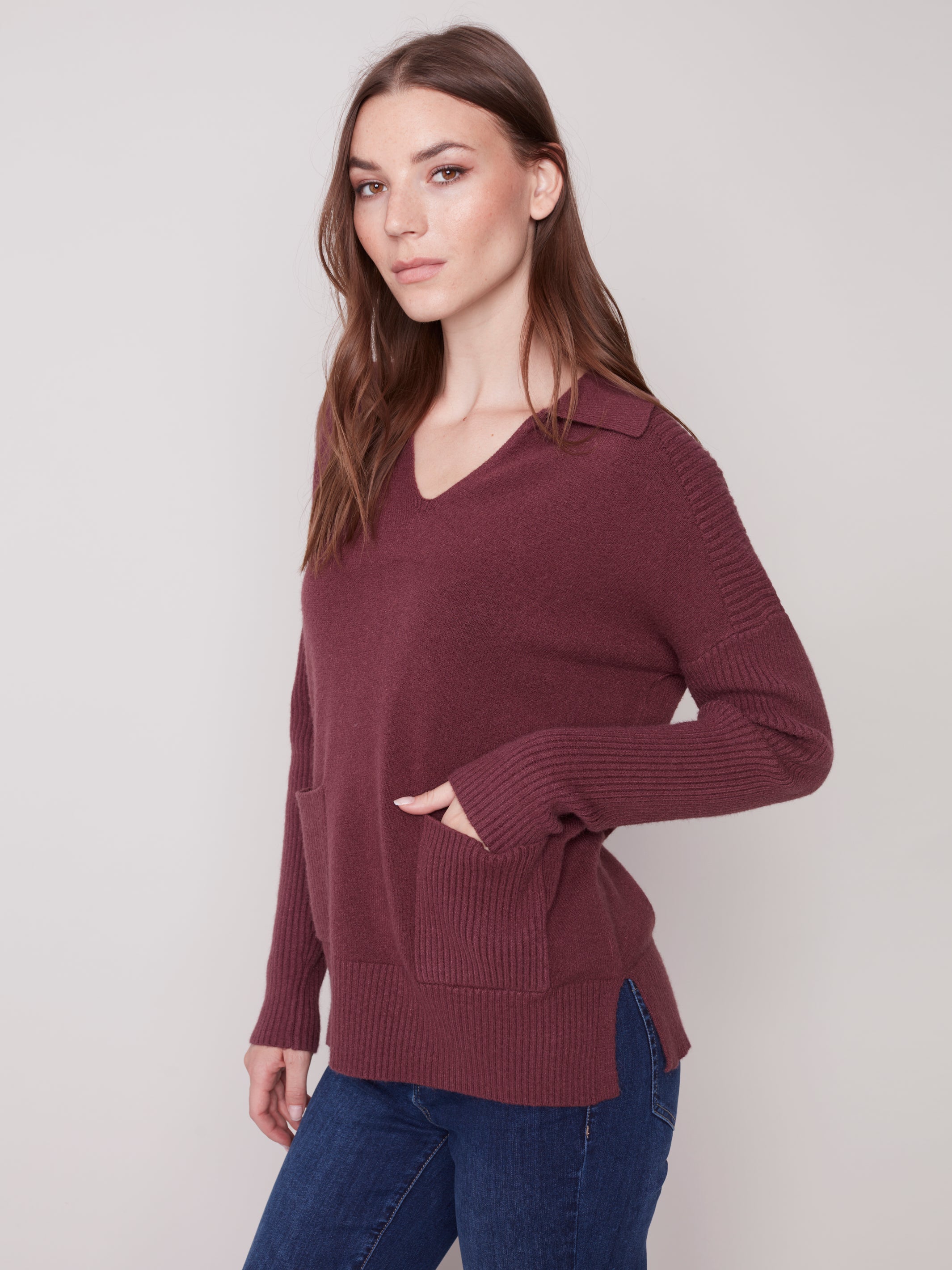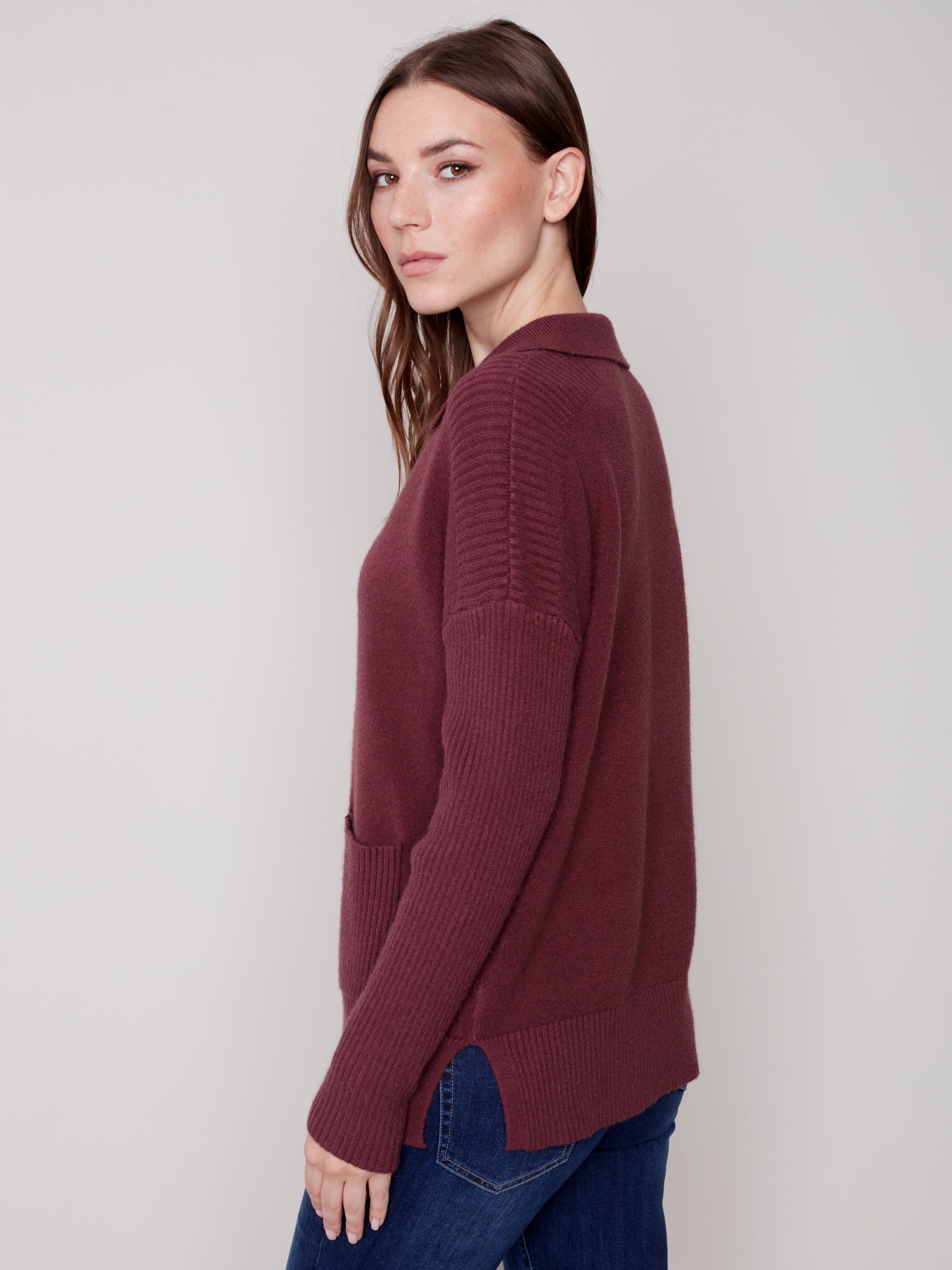 Petal Pink Sequins Yarn Chevron Print Long Sleeve Sweater