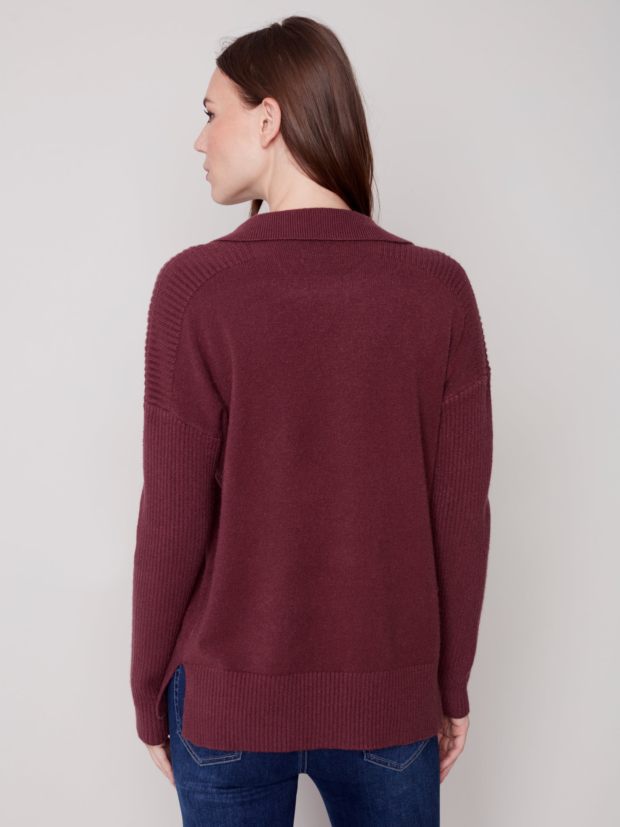Oatmeal Melange & Black Sweater Knit Floral Print Pullover