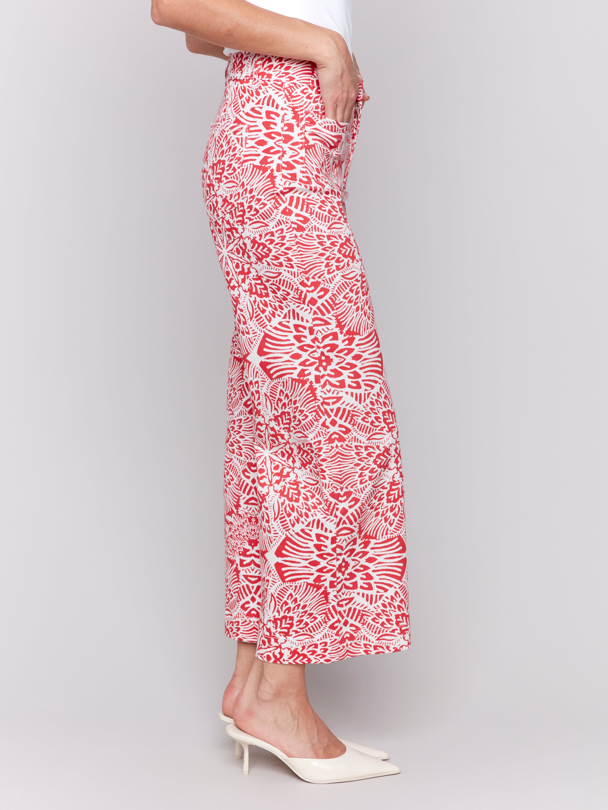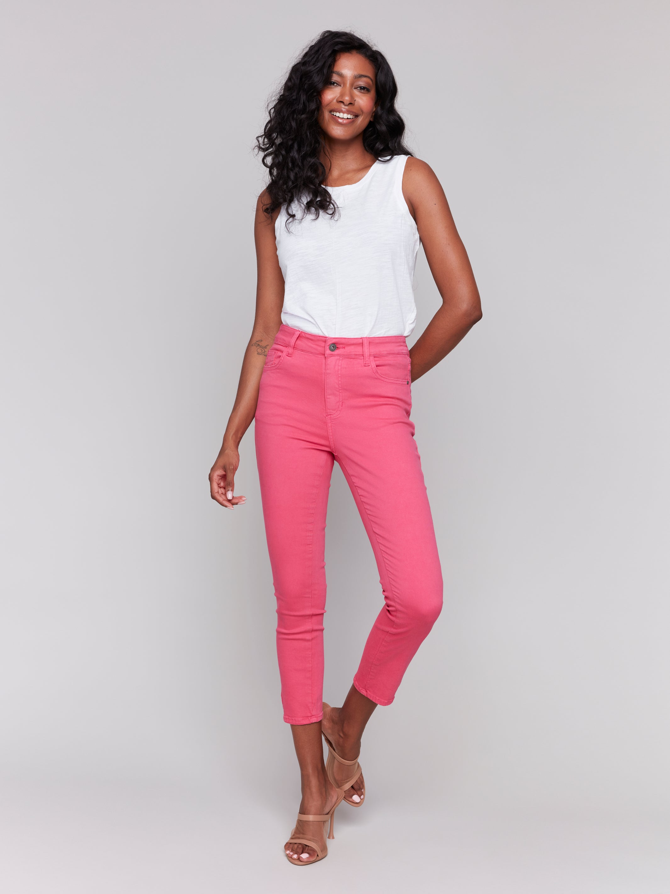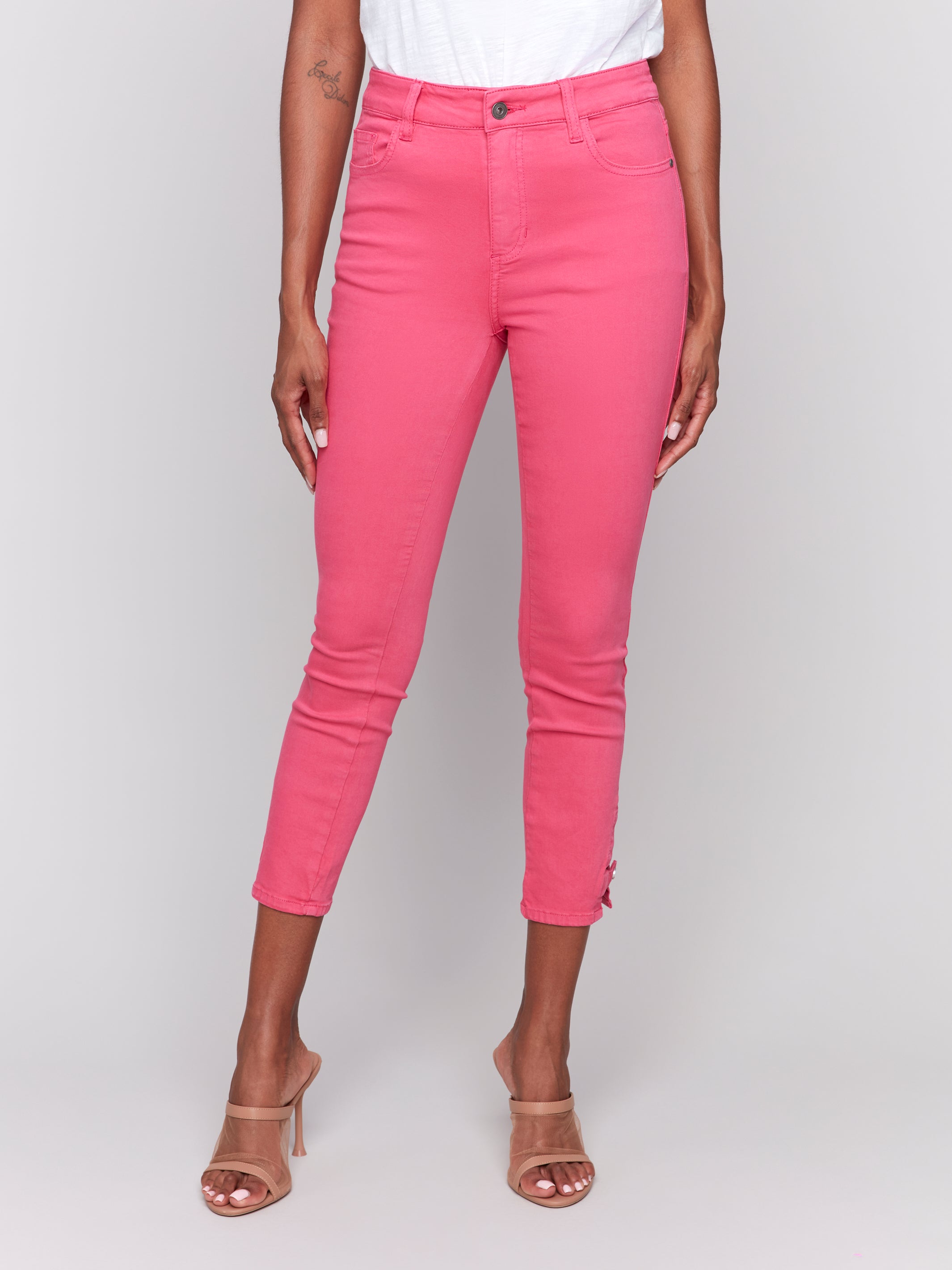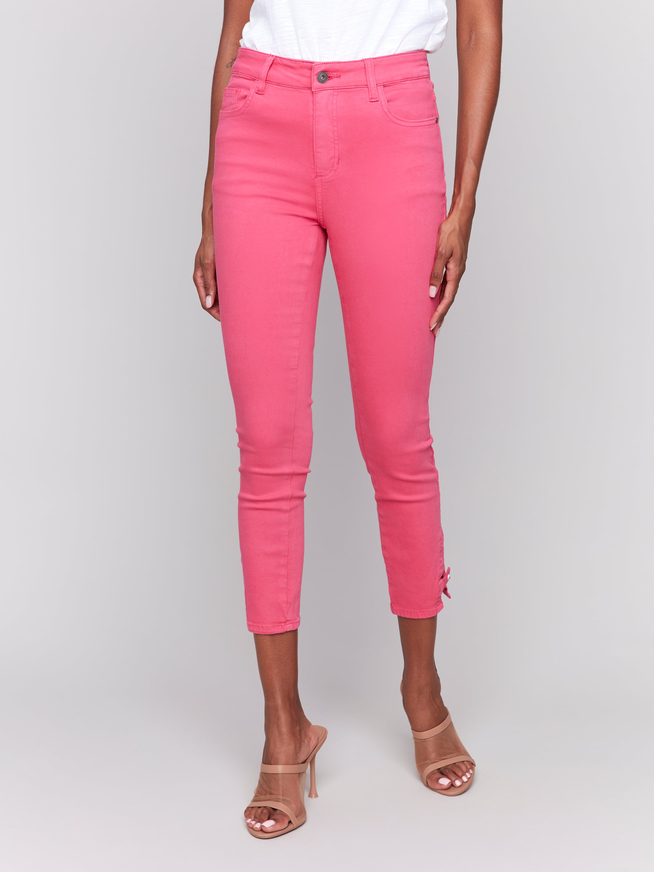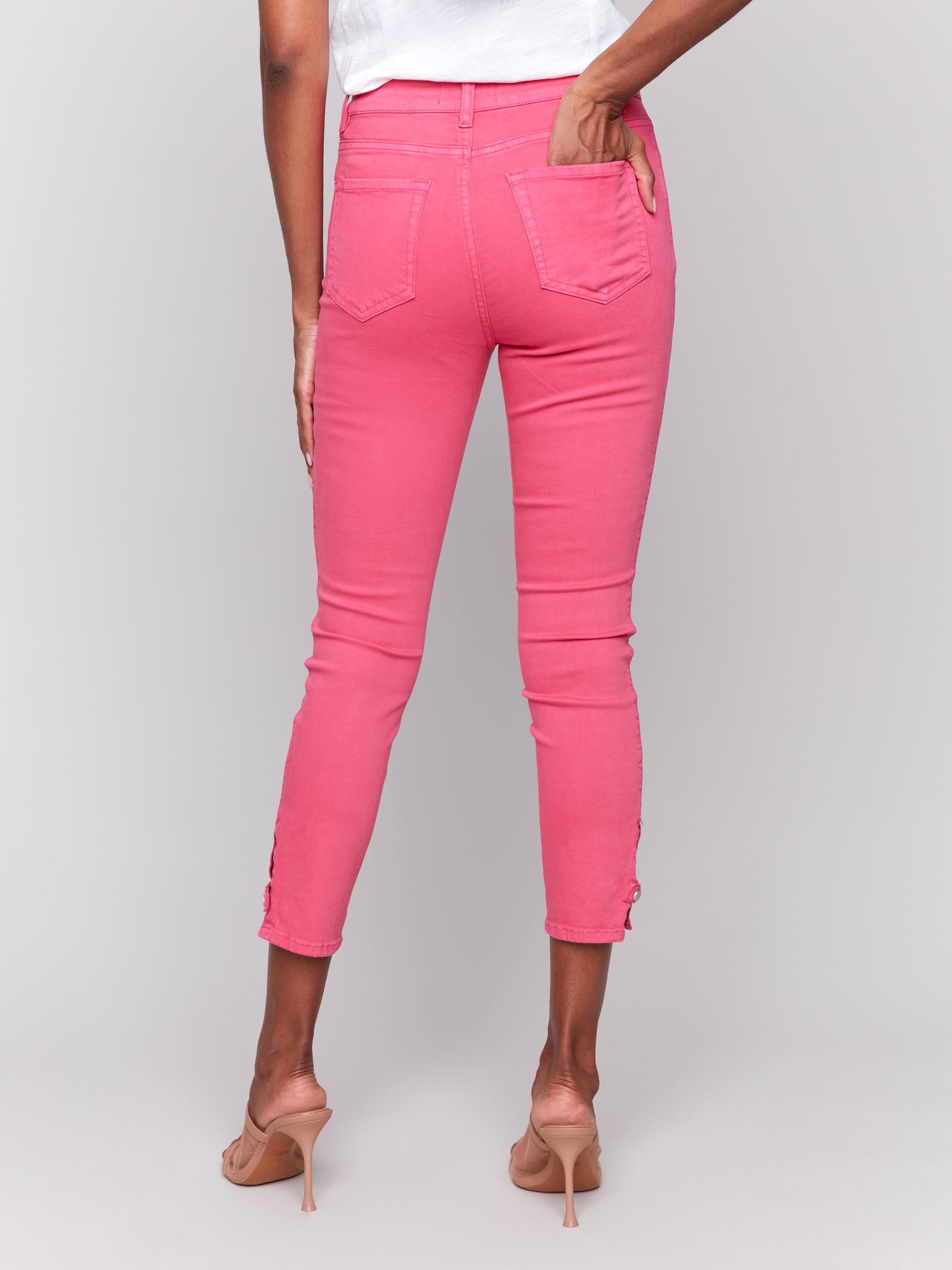 Paradise Pink Twill Mini Tab Ankle Slim Pants