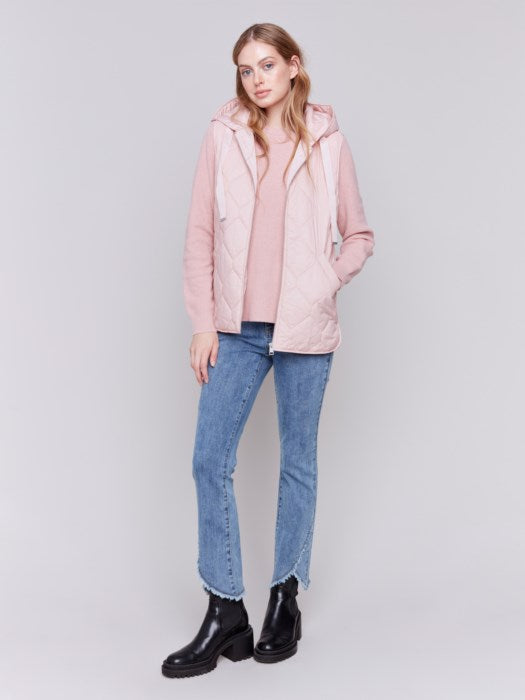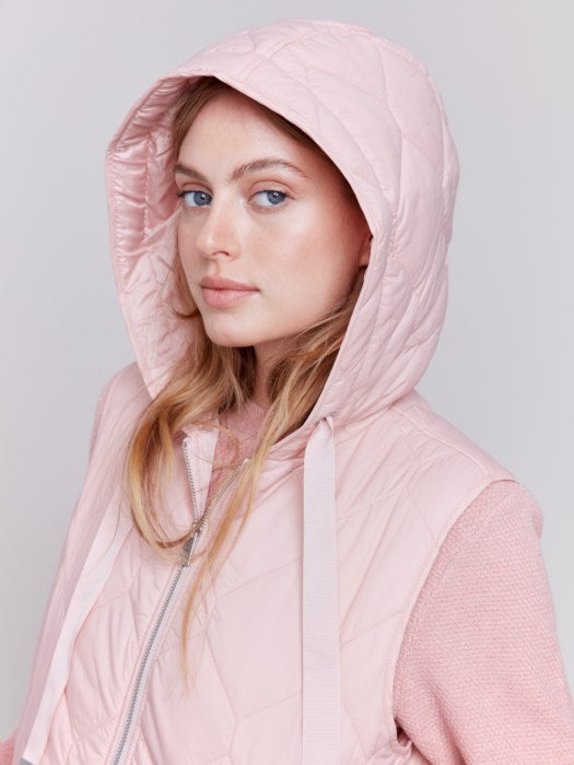 Pink Rose Knit Coat w/ Removable Fur Collar