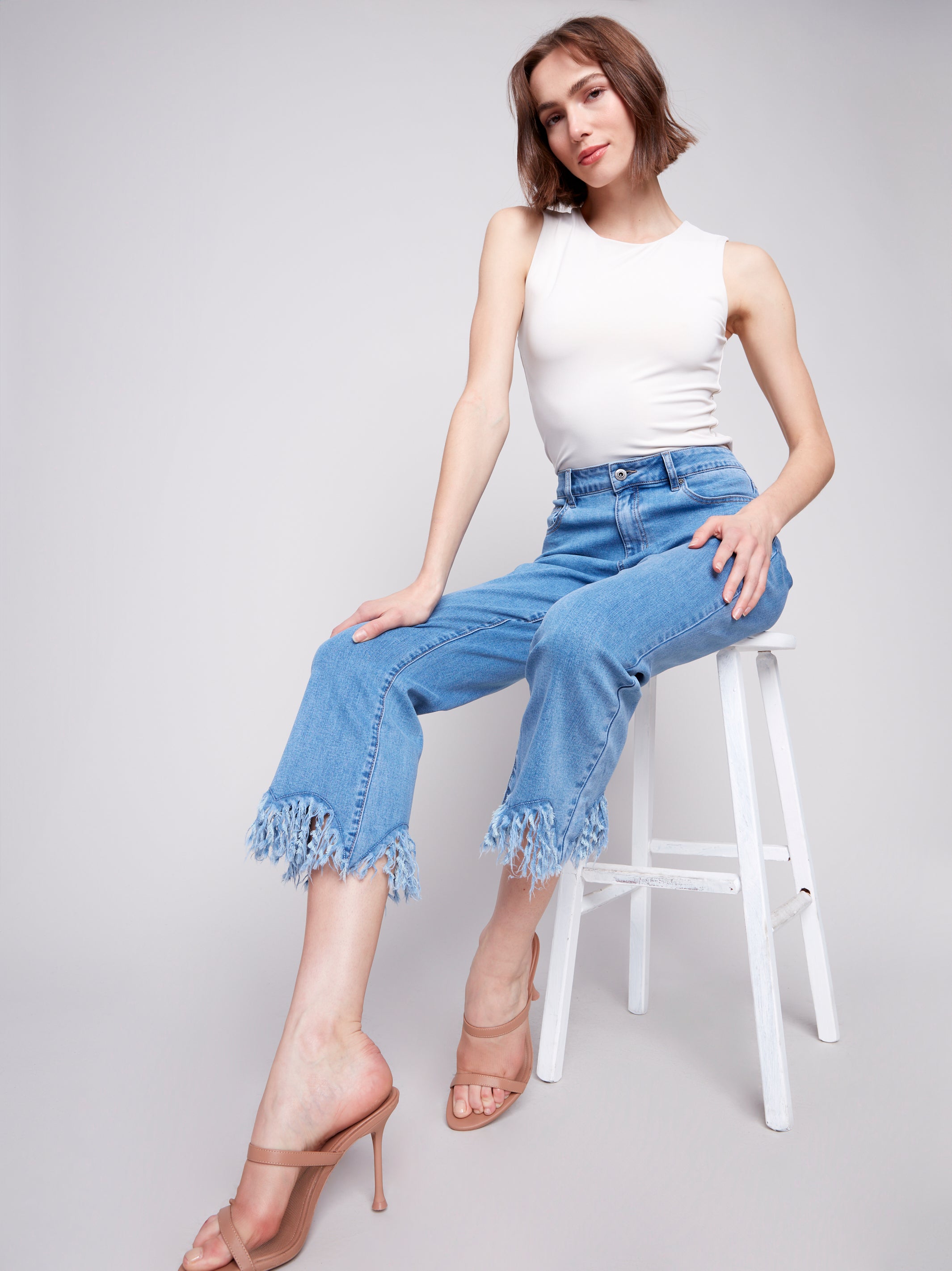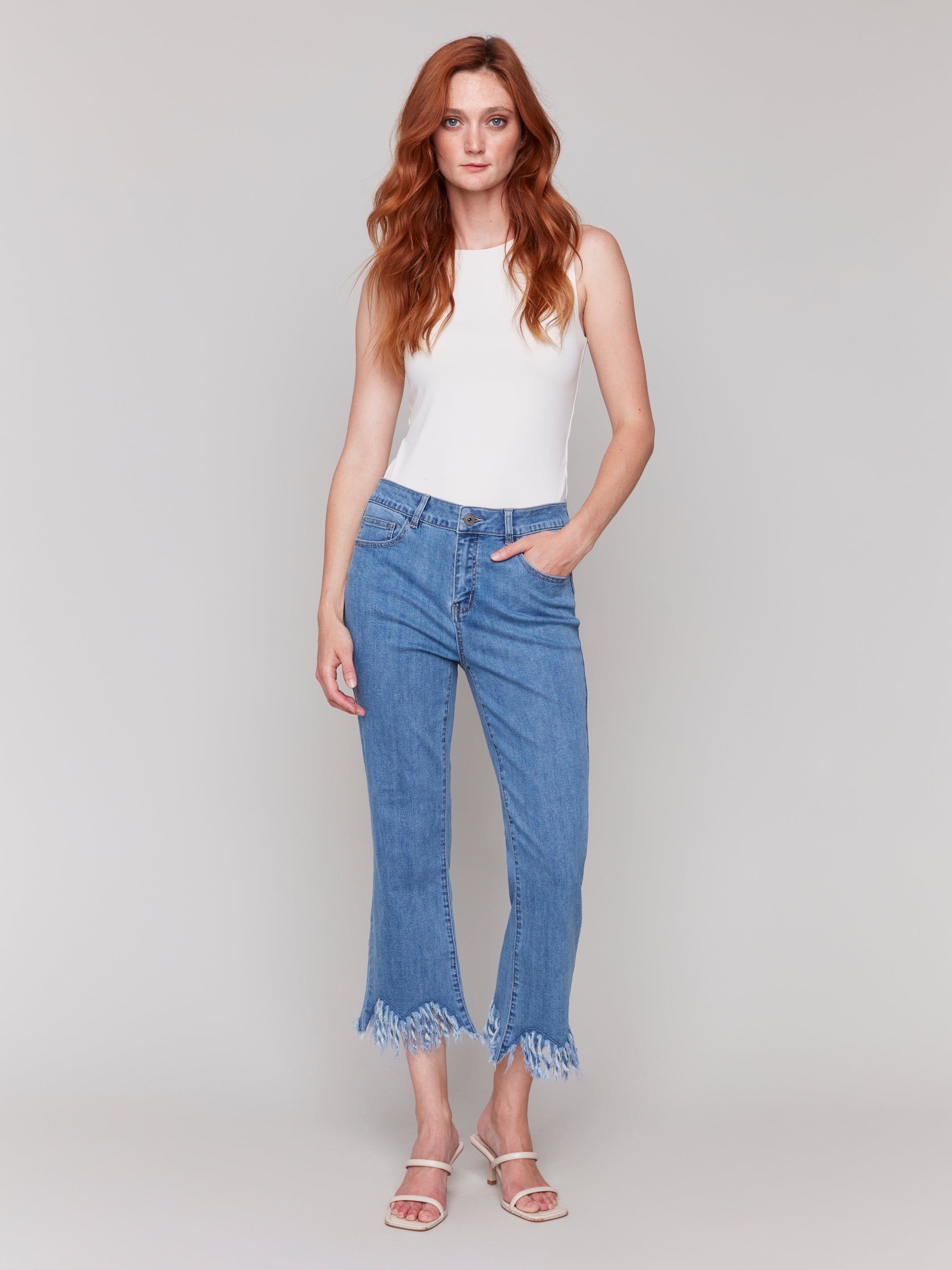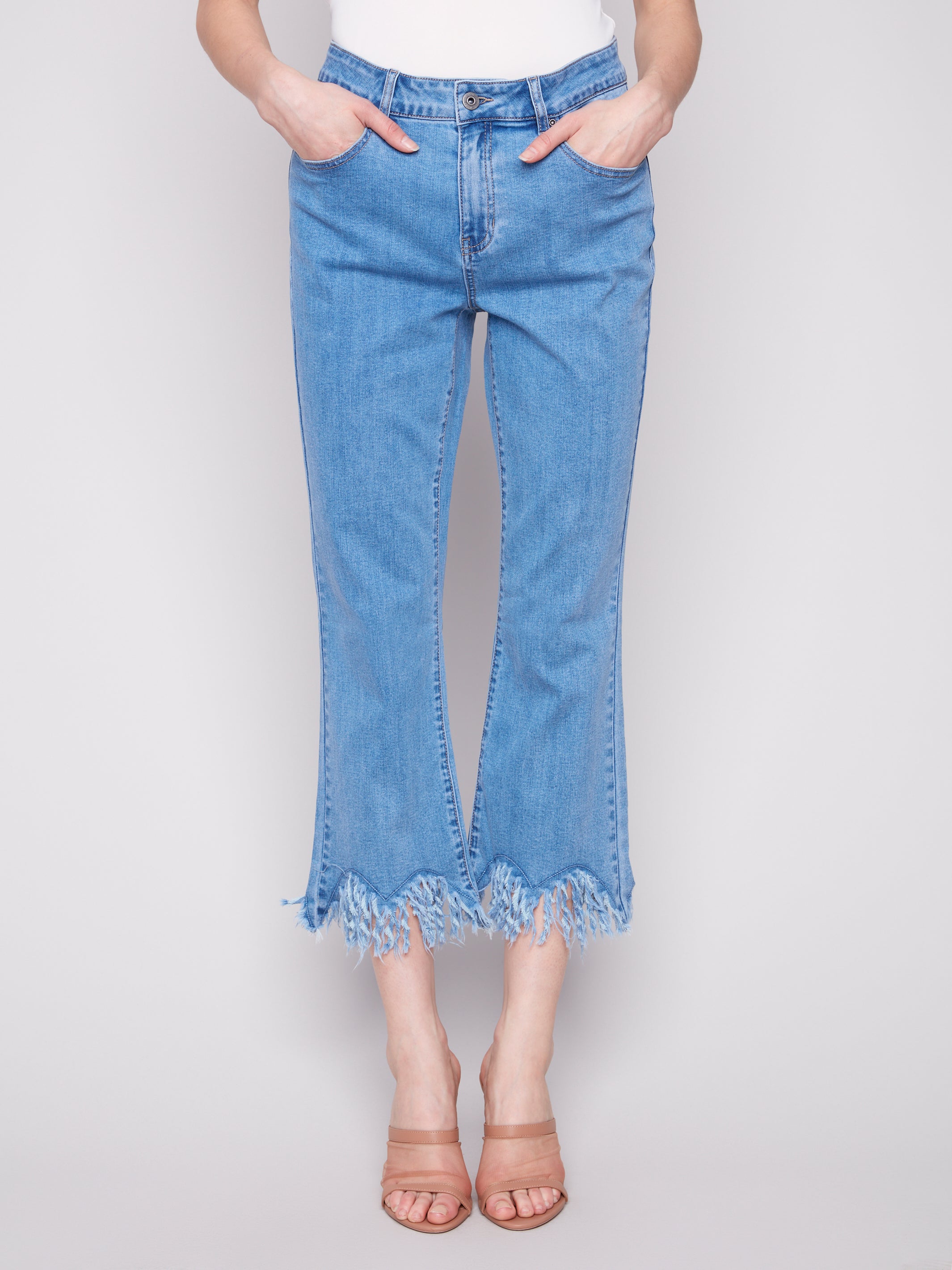 Blue Jean Blue Scalloped Fringe Bottom Jeans