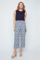 Effortless summer style meets comfort in these lightweight stretch twill wide-leg pants. The high-rise silhouette flatters while the soft, forgiving waistband keeps you comfortable all day. Cropped length and on-trend wide legs create a modern, relaxed look that transitions seamlessly from casual outings to weekend adventures. The blue and white combo adds versatile appeal to any warm-weather wardrobe.