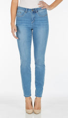Chambray blue cool denim Olivia slim leg jeans. Soft stretch and very comfortable. 31” inseam. 10.5 oz weight.