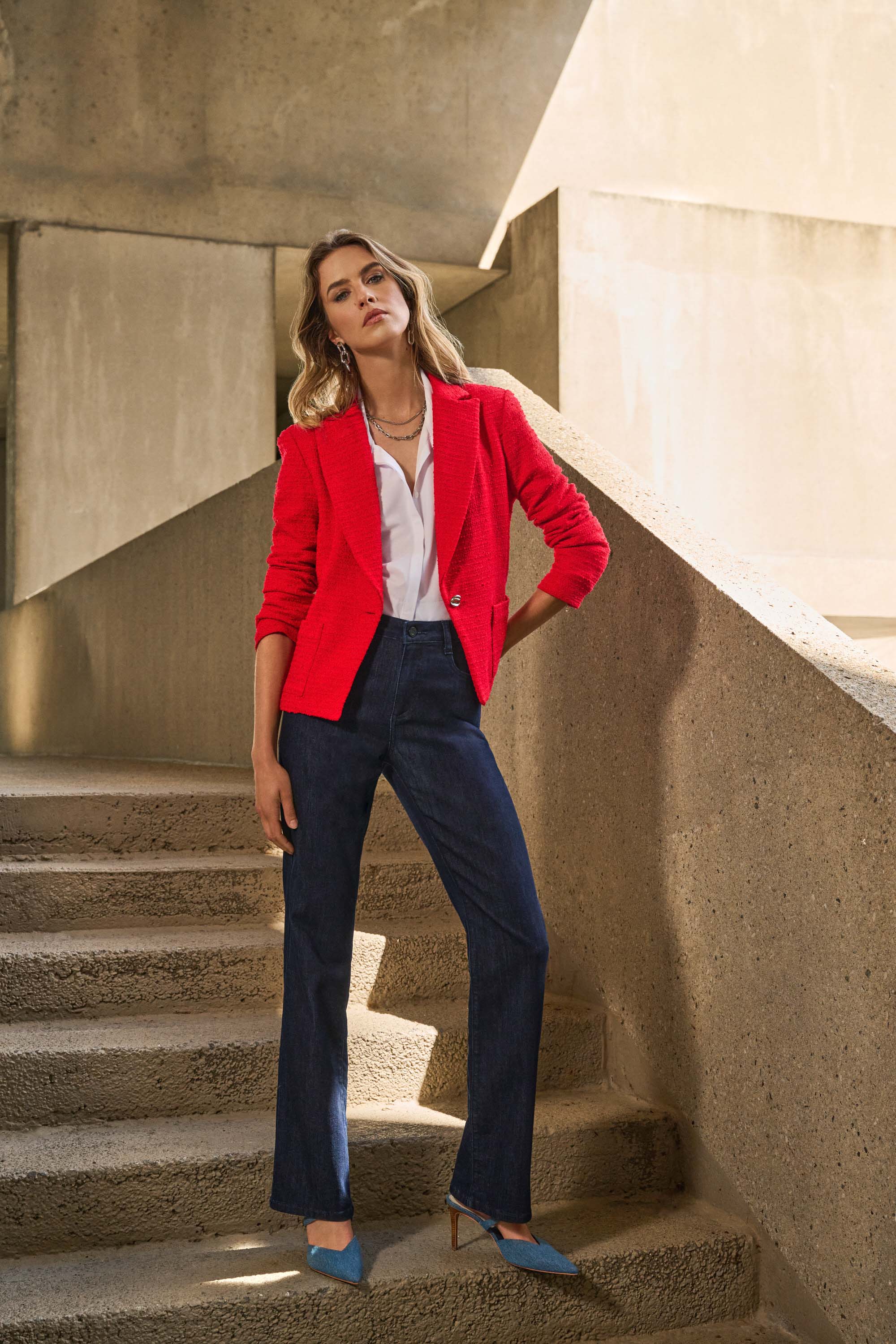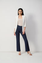 A must-have closet staple, the BROOKE bootcut denim pants are the perfect pair to dress up or down for all kinds of occasions. With a classic five-pocket style and lightweight modal blend, super-soft, Joseph Ribkoff FEATHERWEAVE denim, these fab jeans fit for a star pair just as well with a flowy blouse and heels, as with ankle boots and a graphic tee. The combinations are endless.
