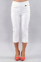 Discover a new level of comfort with our White Premium Stretch Bengaline Capri. Made of stretch bengaline material, these capris not only provide a flattering fit, but also feature a tummy minimizer to enhance your silhouette. Perfect for any occasion, these capris offer both style and functionality.