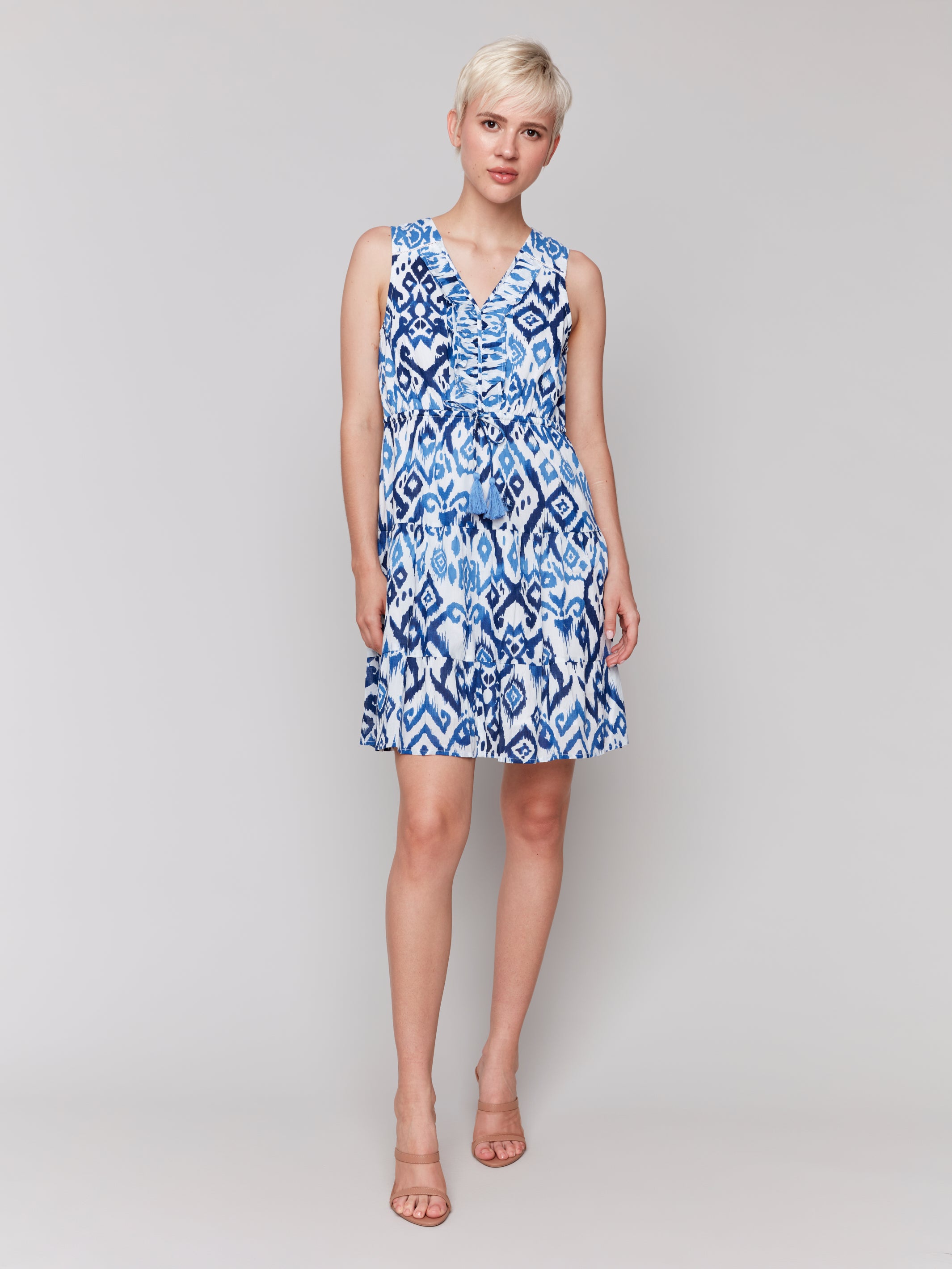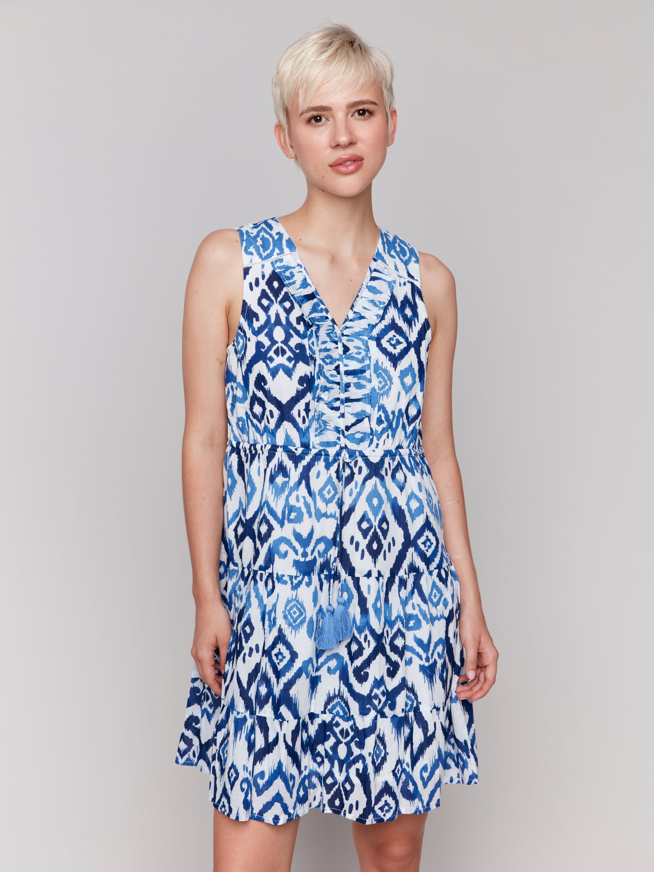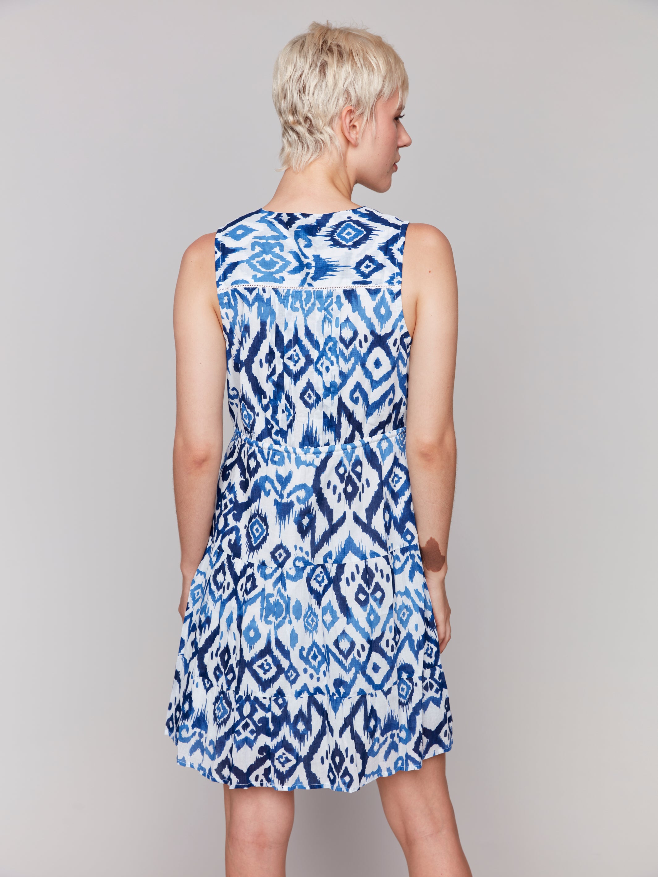 Blue & White Ikat Print Short Cotton Dress