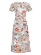 "Quiet Rose" Print Cap Sleeve Dress