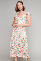 Yellow Spring Floral Midi Dress w/ Flutter Cap Sleeve