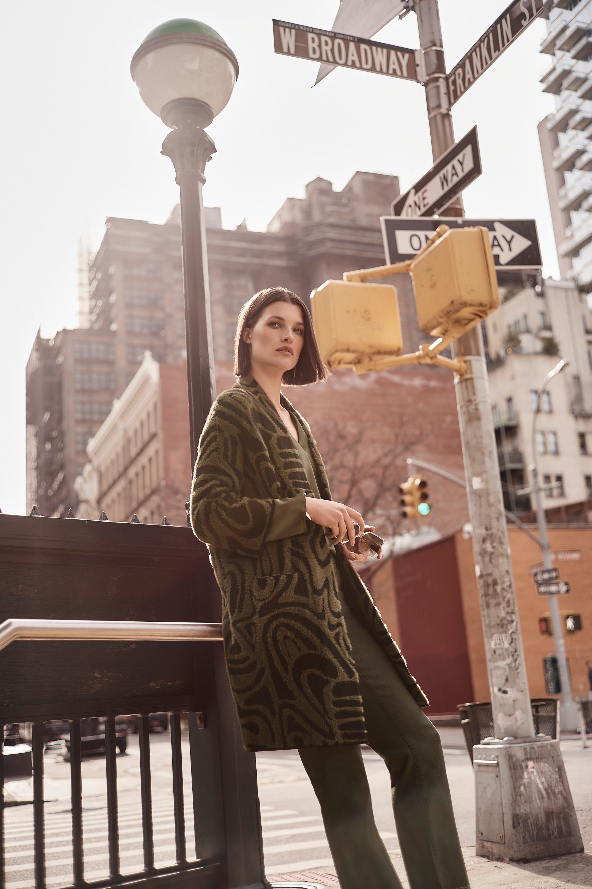 Black & Iguana Green Embossed Jacquard Knit Open Cardigan