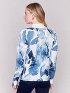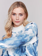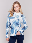 Navy Storm Print Mock Neck Drop Shoulder Sweater