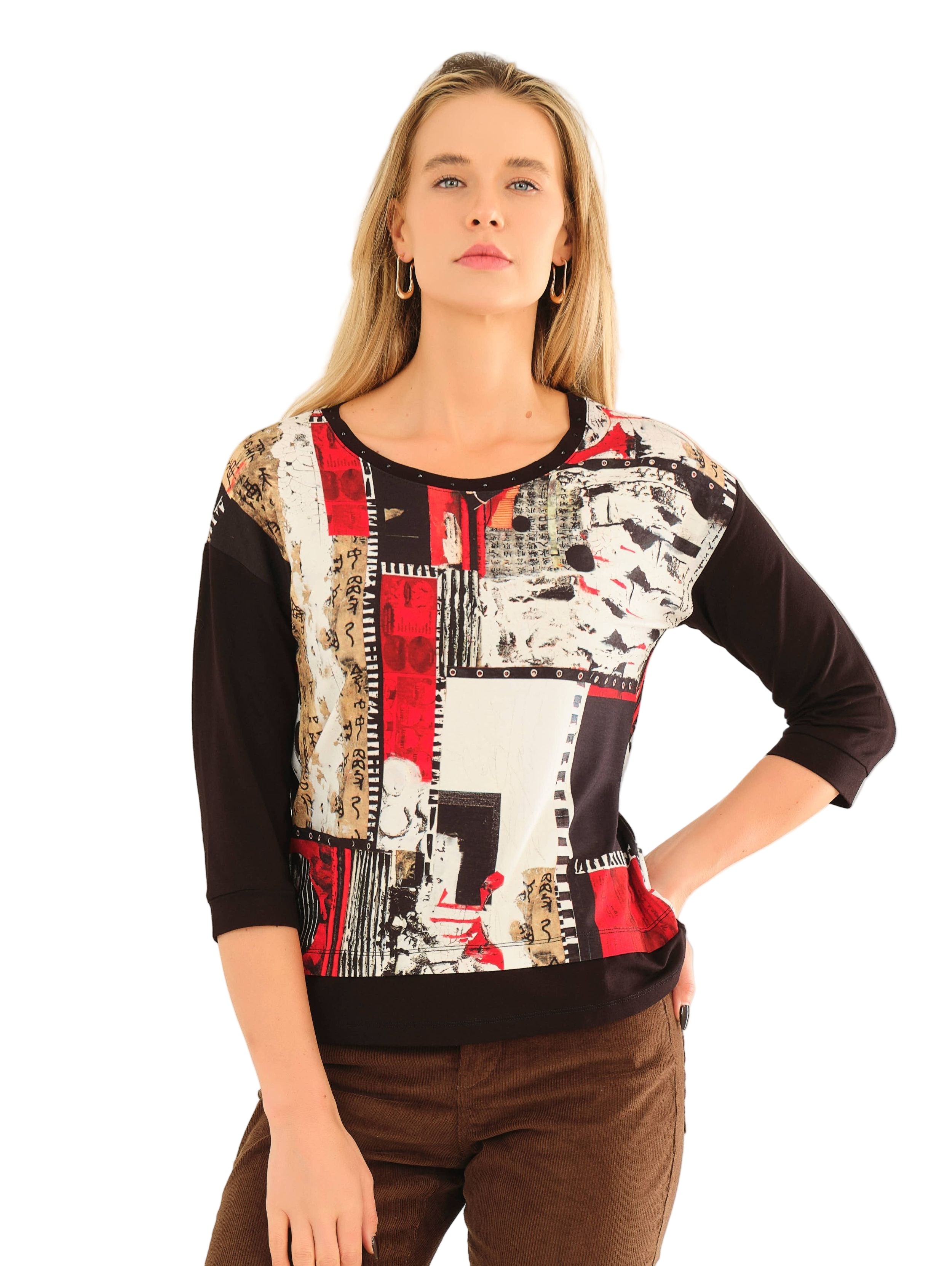 Carol Staub Print Simply Art Layered Look 3/4 Sleeve Top
