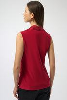 Deep Cherry Satin & Silky Knit Sleeveless Wrap Top