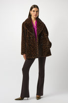 Faux Fur Leopard Print Double-Breasted Coat