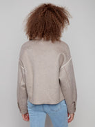 Heathered Oatmeal Wool Jacket With Blanket Stitch & Patch Pockets