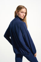 Indigo Stretch Nylon Boxy Mock Neck Jacket