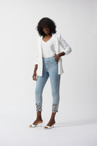With a classic slim fit and an easy pull-on style, these denim pants are already a sure thing. Enhance them with elegant embroidery and delicate pearls at the hem and you've got yourself an irresistible look.