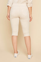 Introducing our Oyster Beige Lux Tencel Premium Twill Pedal Pusher! This is a great neutral bottom to go with many tops! Experience ultimate comfort and style with the luxurious feeling fabric. Elevate your denim look and enjoy a generous fit with lots of stretch. Sizing down is recommended for the perfect fit. Order now!