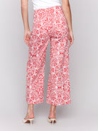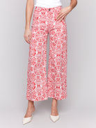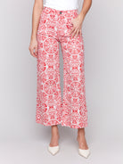 Introducing our Red & White Fiesta Print Cropped Flare Pants - perfect for a bold and playful look! These pants feature a cropped flare leg that can be styled as a 7/8 length or full length for a perfect fit on petite or shorter inseams. Stand out and be stylish with these eye-catching pants!