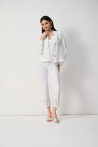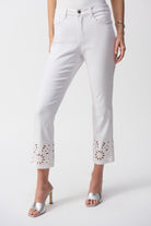 These straight fit denim pants gain extra style points with delicate embroidery at the hem. Their cropped length make them ideal for casual outings on spring and summer days.