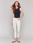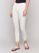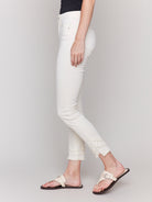 Transform your wardrobe with our White Fringe Hem Skinny Jeans! Stand out in style with the popular fringe detail on these flattering skinny leg jeans. Say goodbye to boring denim and hello to a fresh and fashionable look. Elevate your outfit and confidence with these must-have jeans.