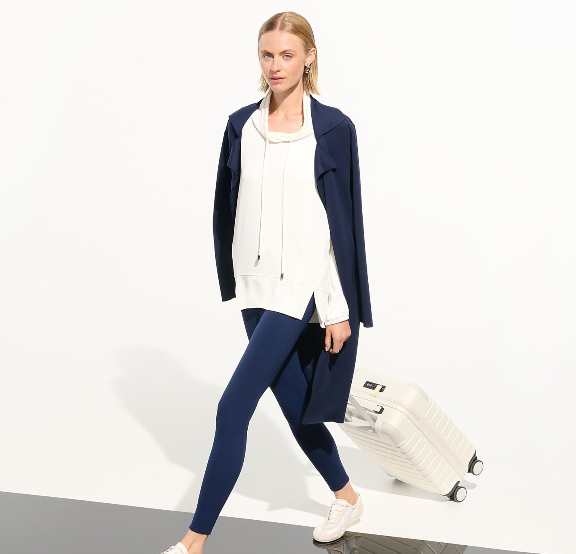 A relaxed silhouette meets elevated detail in this woven twill tunic. The high-low hem pairs with long drop shoulder puff sleeves, while a drawstring funnel collar with JR logo cord ends adds a signature finish.