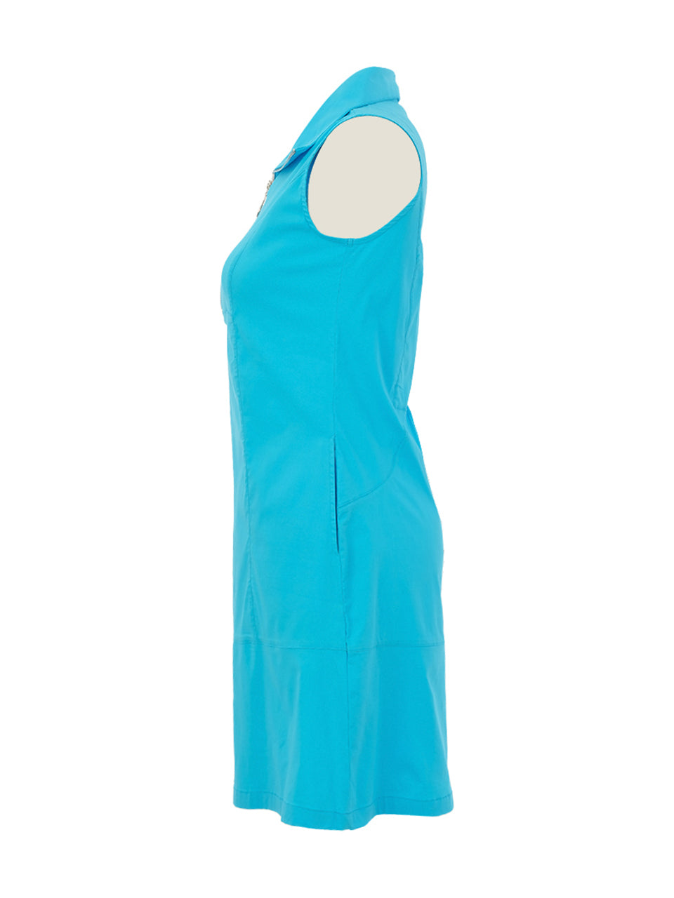 Turquoise 1/4 Zip Travel Cotton Sleeveless Midi Dress