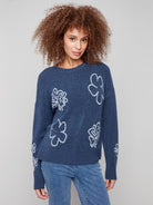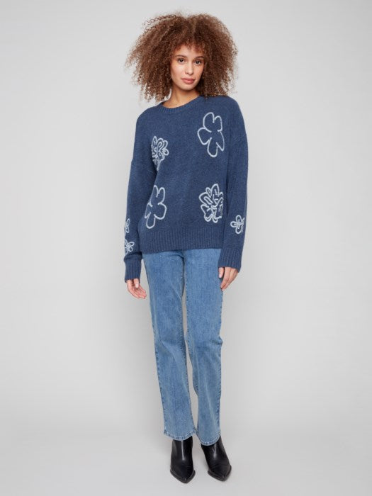 Experience comfort and style with the Heathered Denim Embroidered Crew Neck Sweater. Its cozy fabric keeps you warm, while the hip-length cut offers a flattering fit perfect for layering or solo wear. The subtle embroidery adds a unique touch, making this sweater a versatile staple for your casual wardrobe. Back HSP Length : 23".