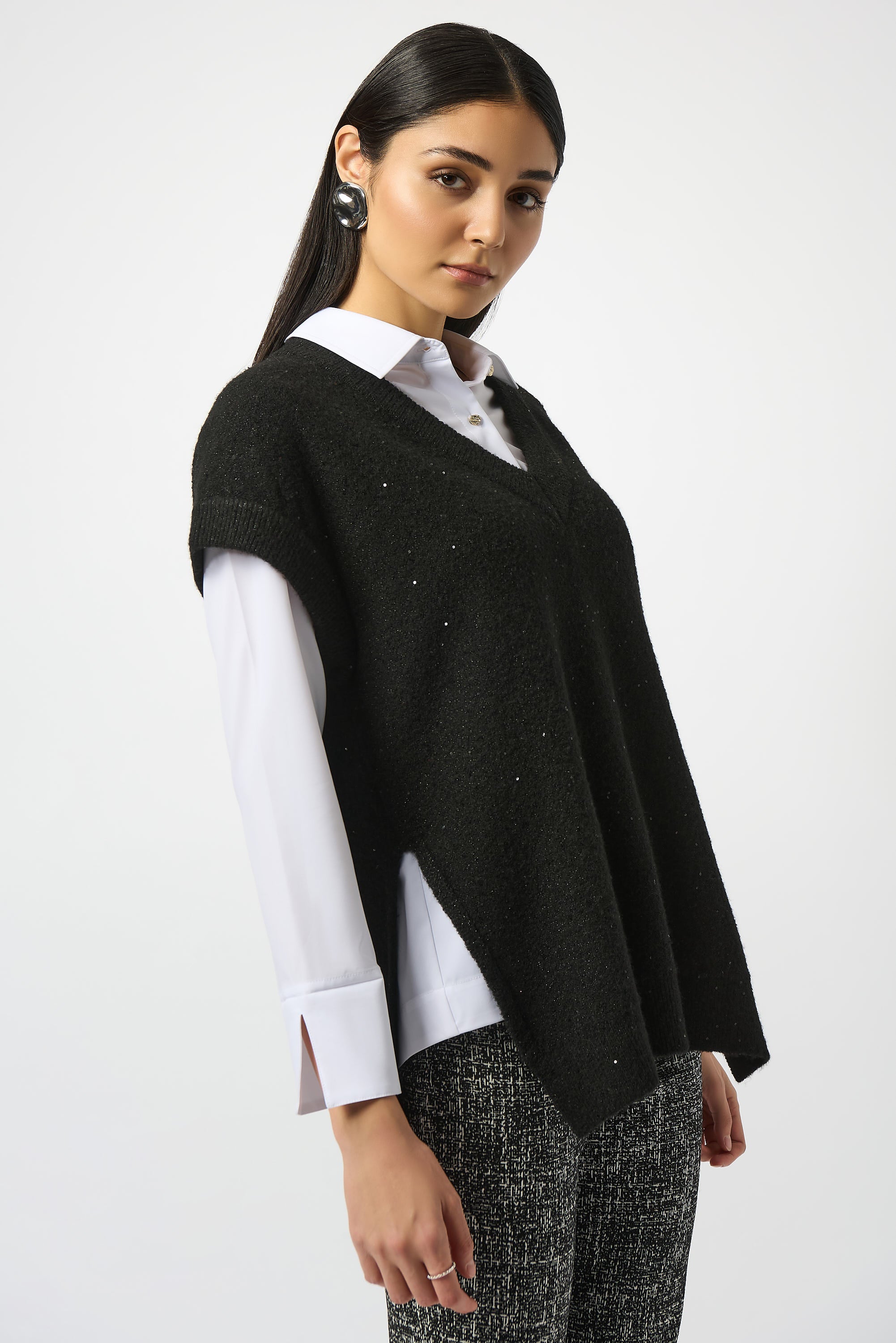 Black Sweater Knit Sleeveless Tunic with Sequins