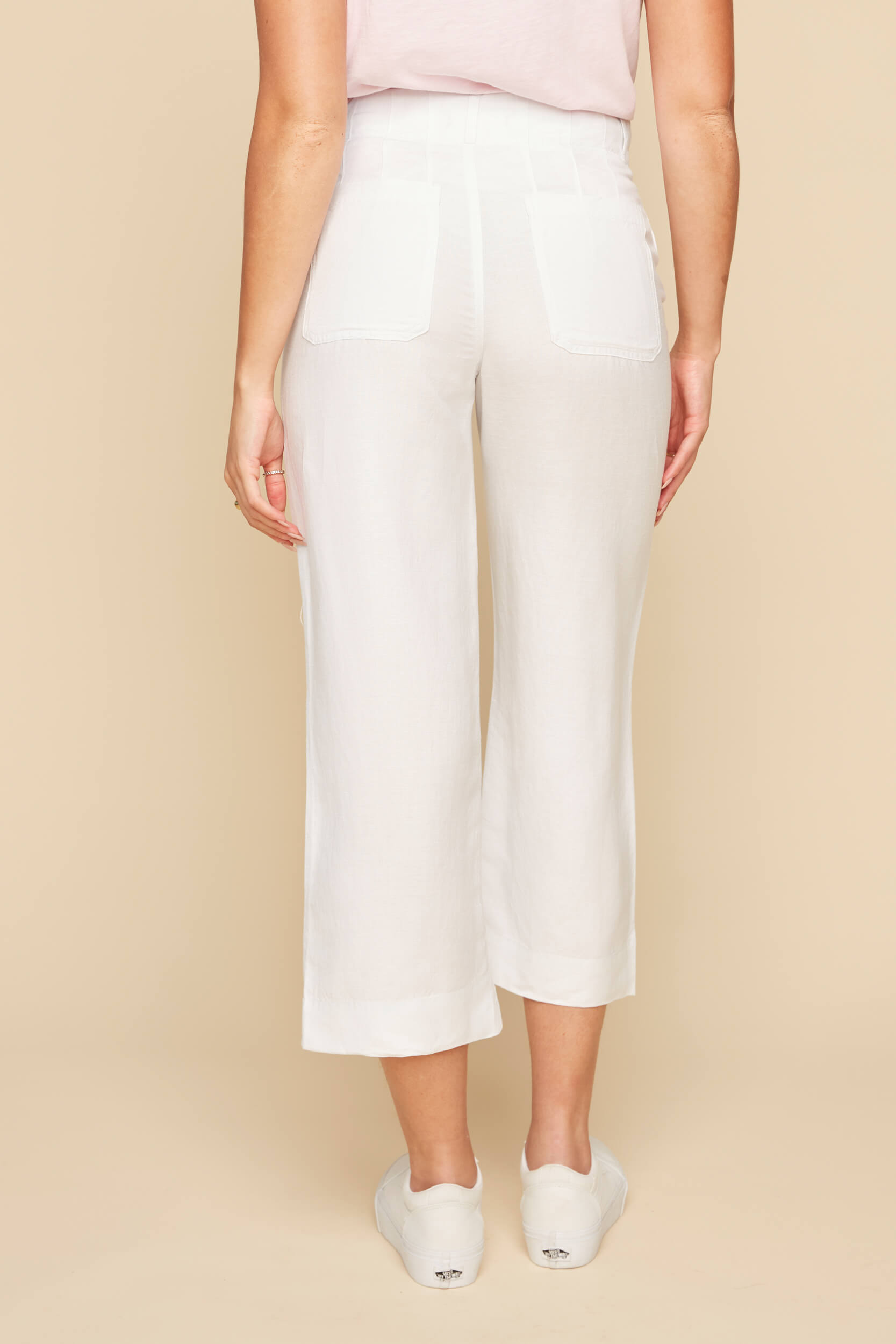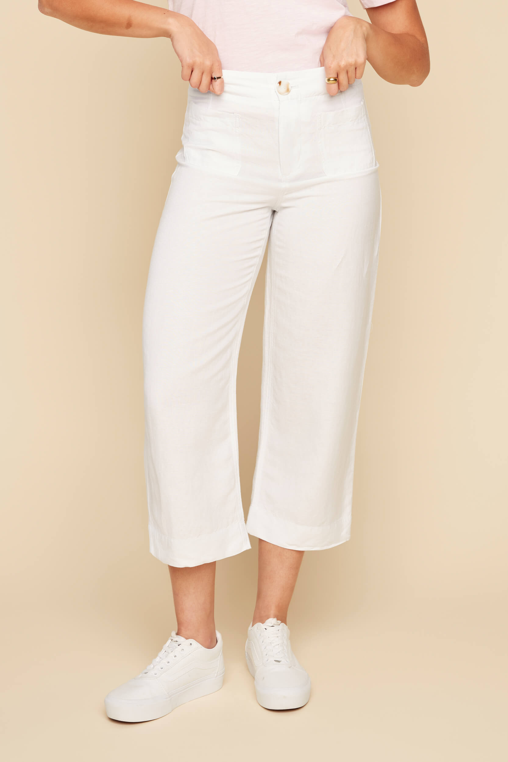 White Linen Blend Cropped Wide Leg Pants w/ 4 Pockets