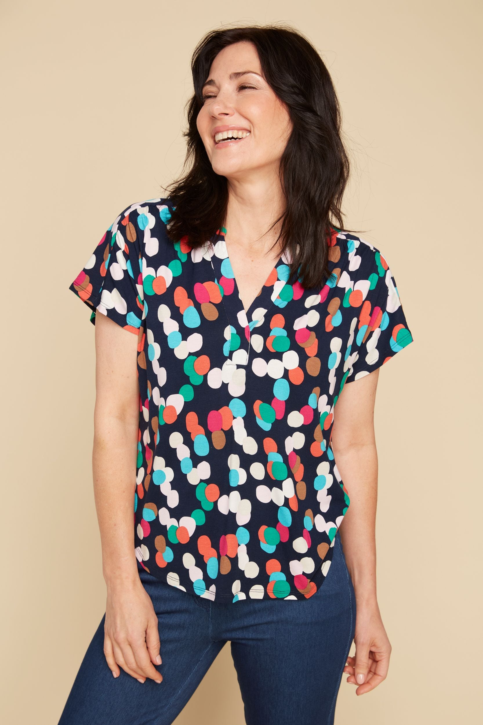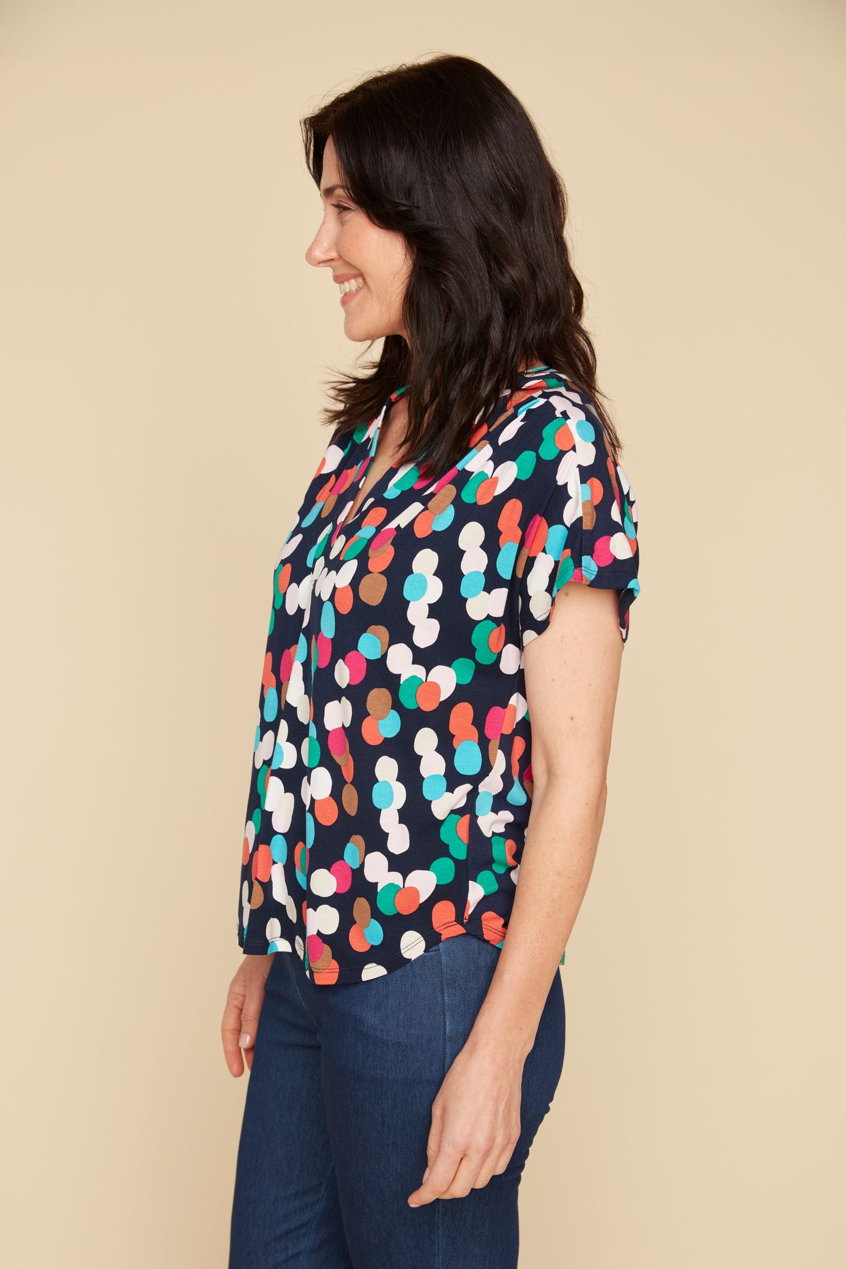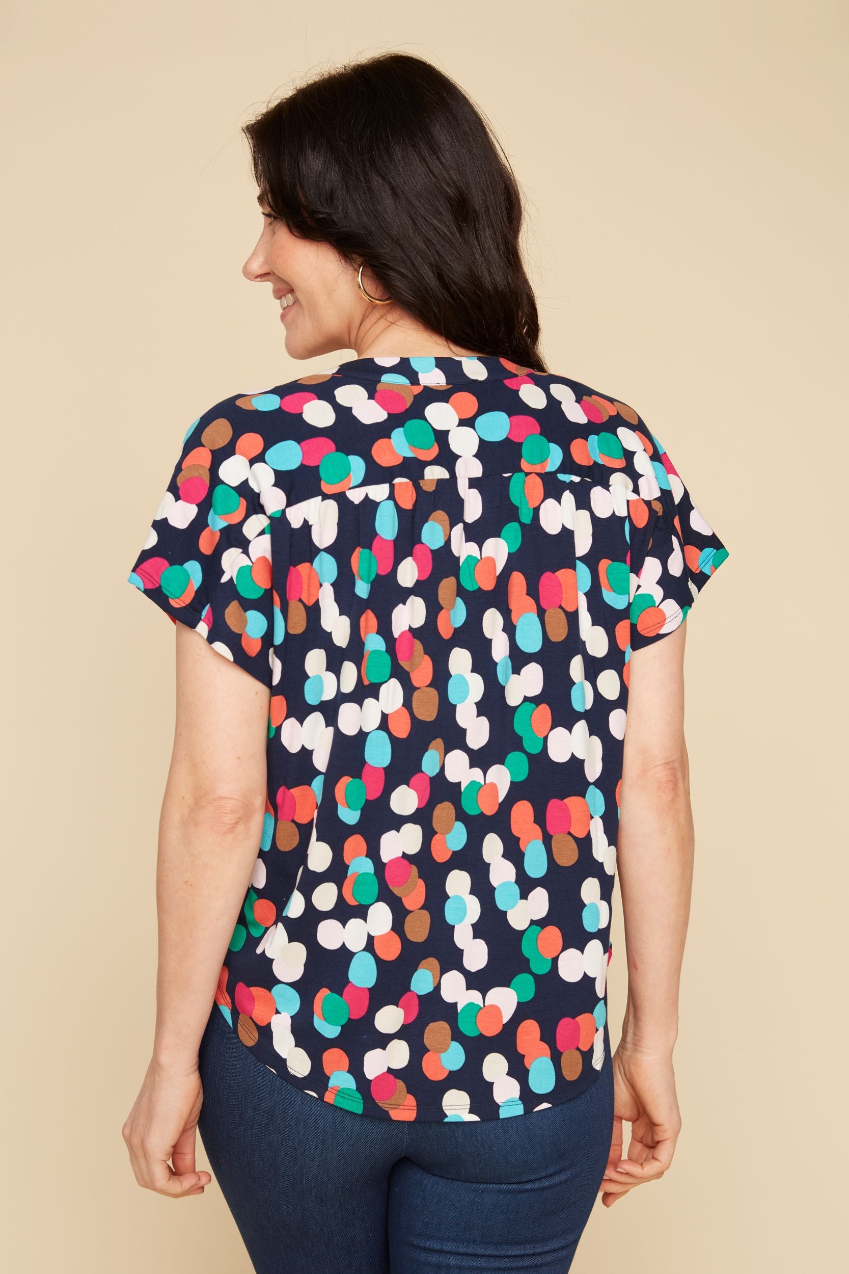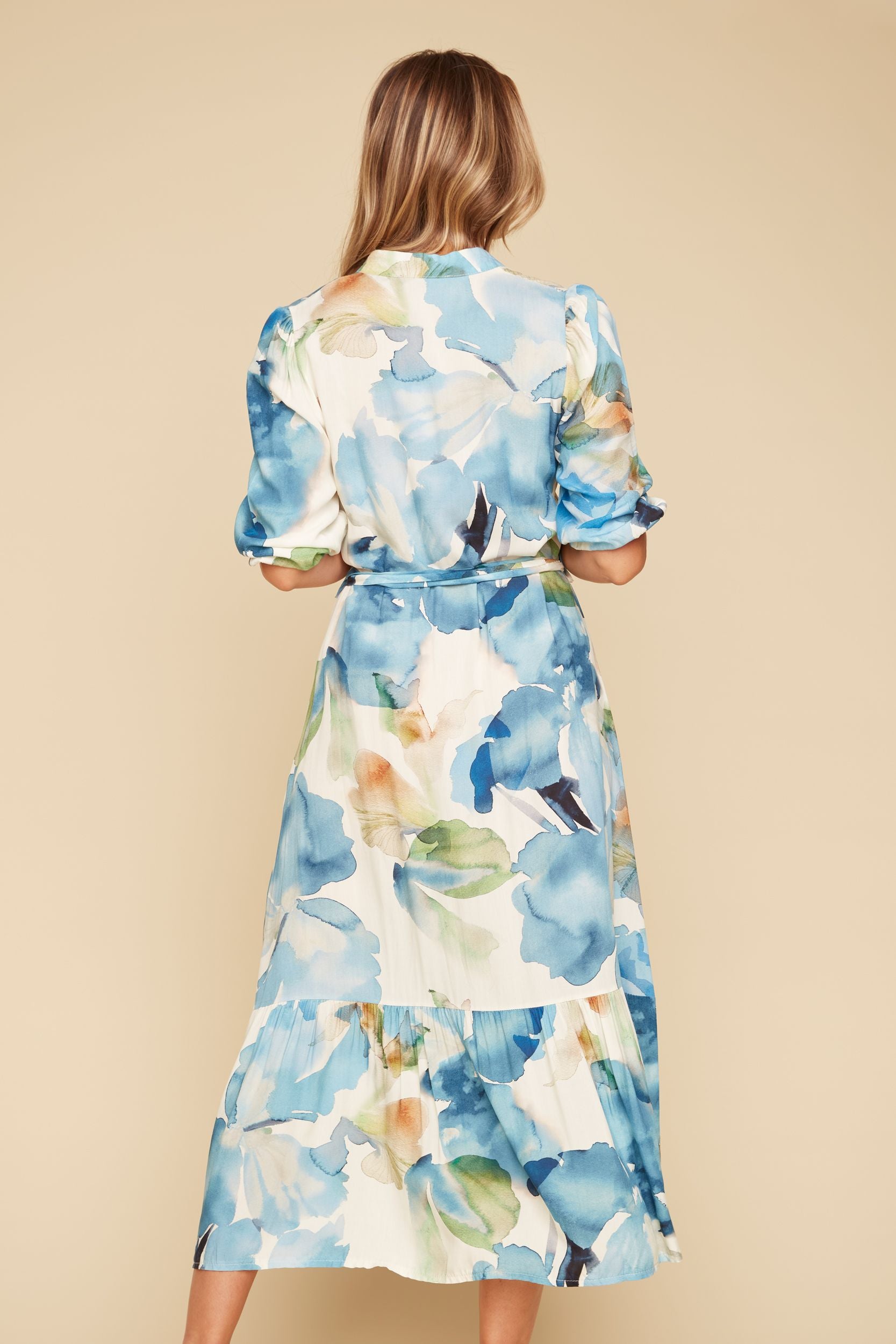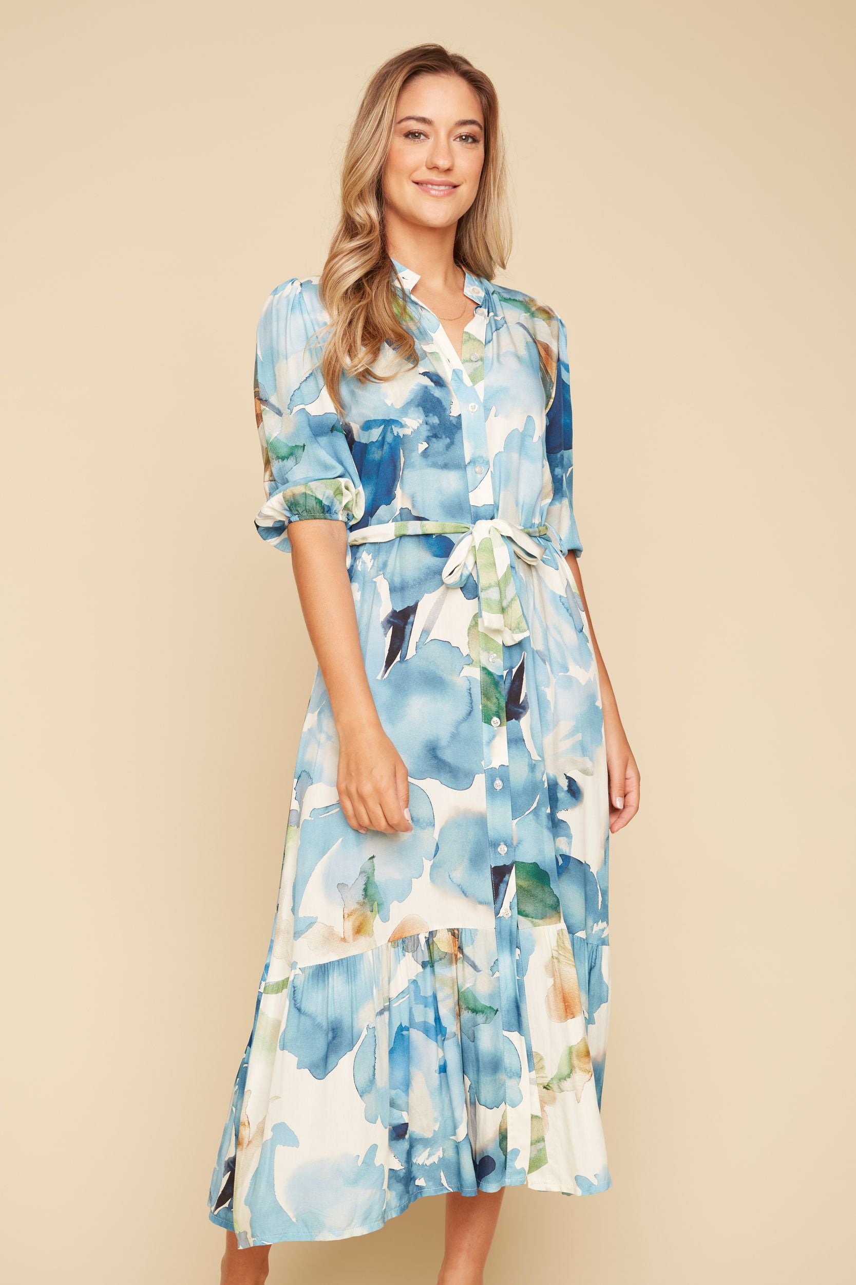 Aquamarine Mix Print Tab Sleeve Shirt Dress
