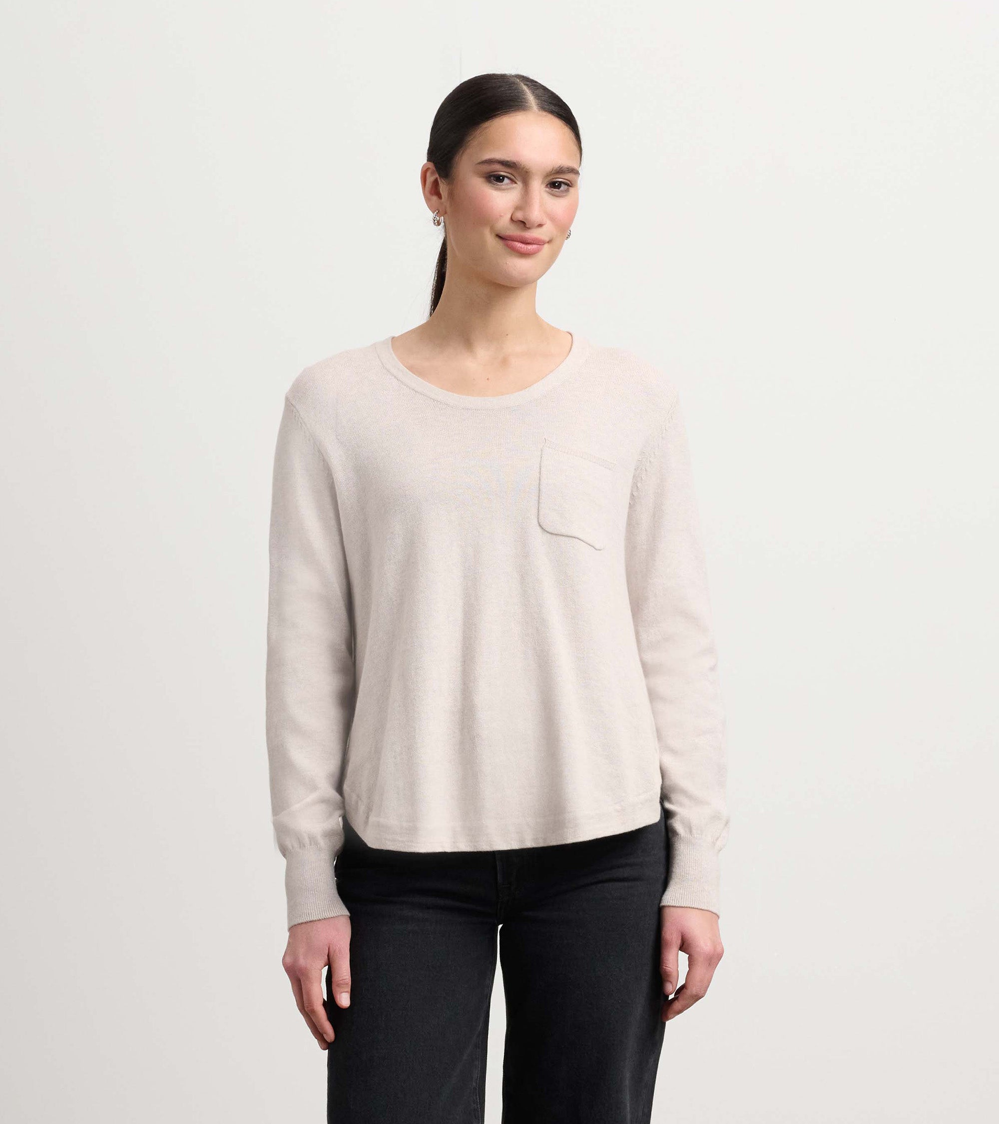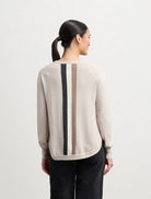 Luxuriously soft cotton and cashmere blend that feels as good as it looks. The back features a striking race stripe detail that adds contemporary edge, while the rounded hem works perfectly for tucking or wearing loose. Effortless style meets everyday comfort in this versatile piece.