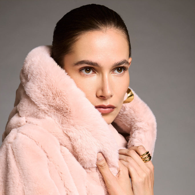 Rose Pink Faux Fur Reversible Hooded Coat